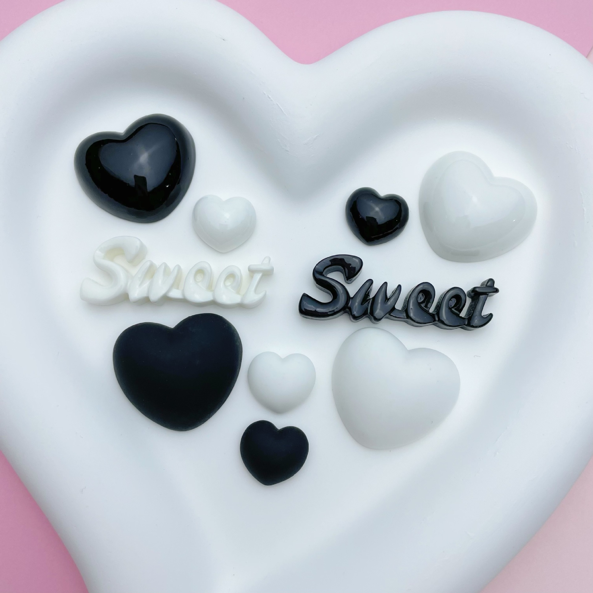 Xiangfeng 흑백 러브 카드 달콤한 편지 수지 액세서리 헤어 클립 귀걸이 크림 접착제 휴대 전화 케이스 액세서리