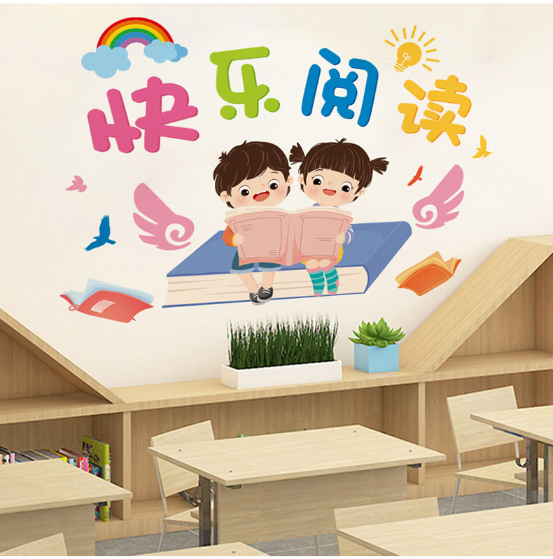 Hui Zhicai 벽 스티커 CH46051 행복한 독서 어린이 방 공부 학교 교실 좋은 습관 벽 장식 스티커스토어 가기