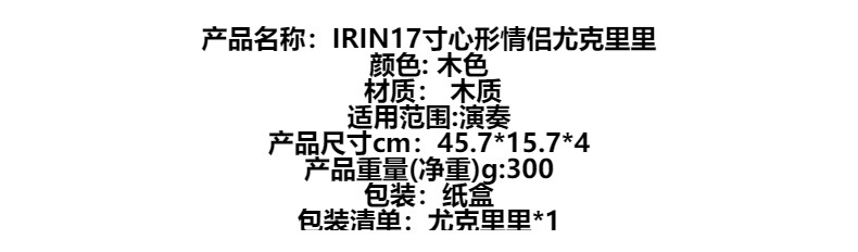 도매 IRIN17 인치 우쿨렐레 하트형 우쿨렐레 커플 우쿨렐레 초보자 4 현 기타스토어 가기