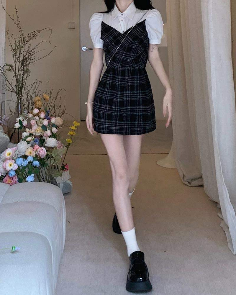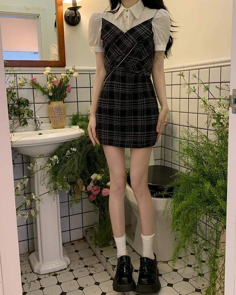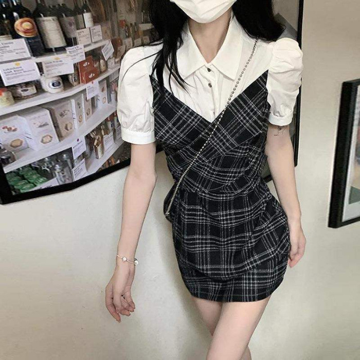 원피스 여성 여름 2023 새로운 한국식 틈새 디자인 센스 고급형 슬림 핏 슬리밍 가짜 투피스 원피스 트렌디