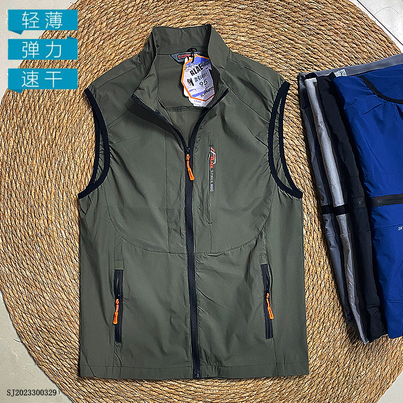 대외 무역 오리지널 주문 2023 봄과 여름 새로운 남성 캐주얼 조끼 야외 등산 승마 속건 탄성 조끼