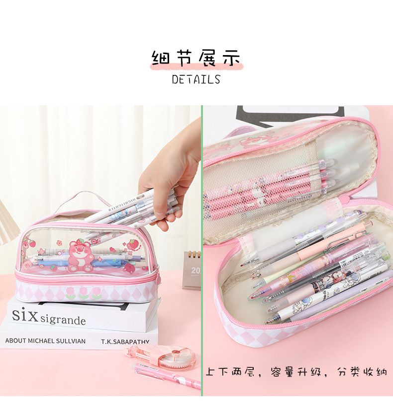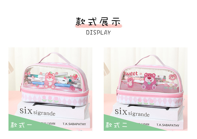 yx23 신형 크로스보더 제조업체 만화 대용량 곰돌이 필통 수납 가방 학생 휴대용 투명 문구함스토어 가기