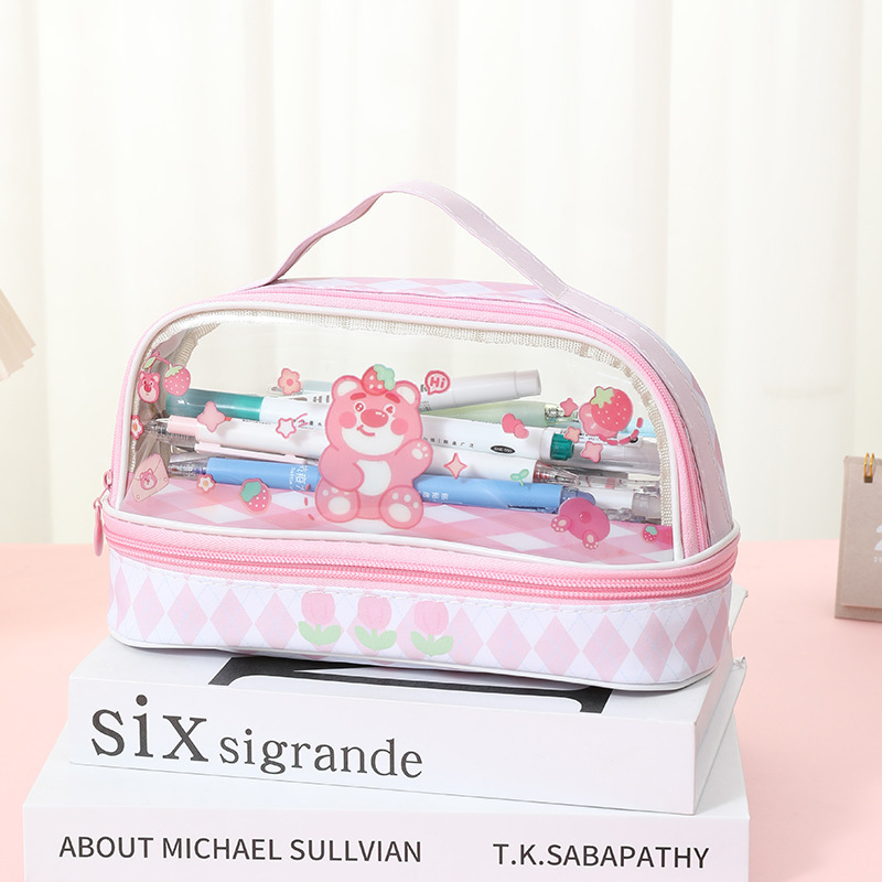 yx23 신형 크로스보더 제조업체 만화 대용량 곰돌이 필통 수납 가방 학생 휴대용 투명 문구함