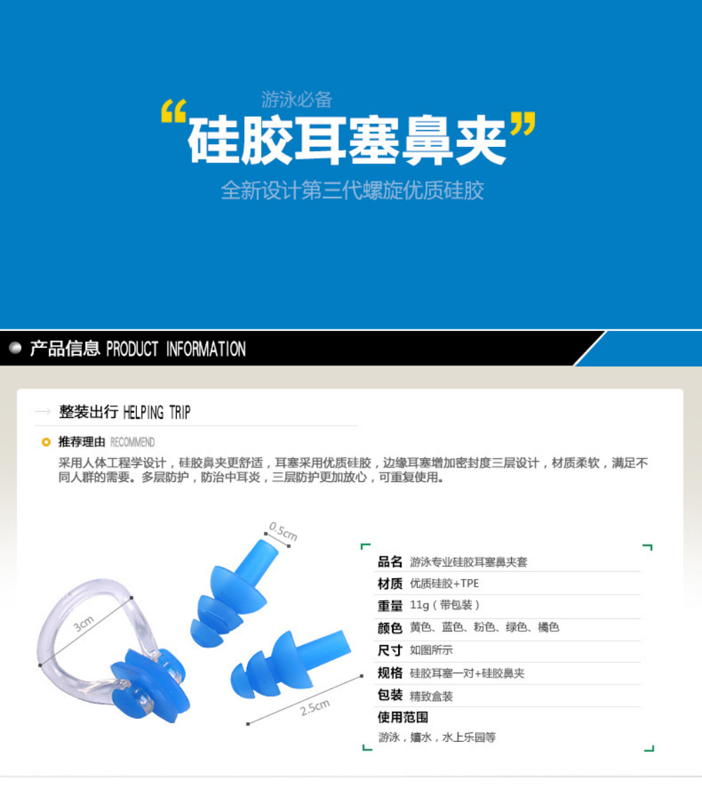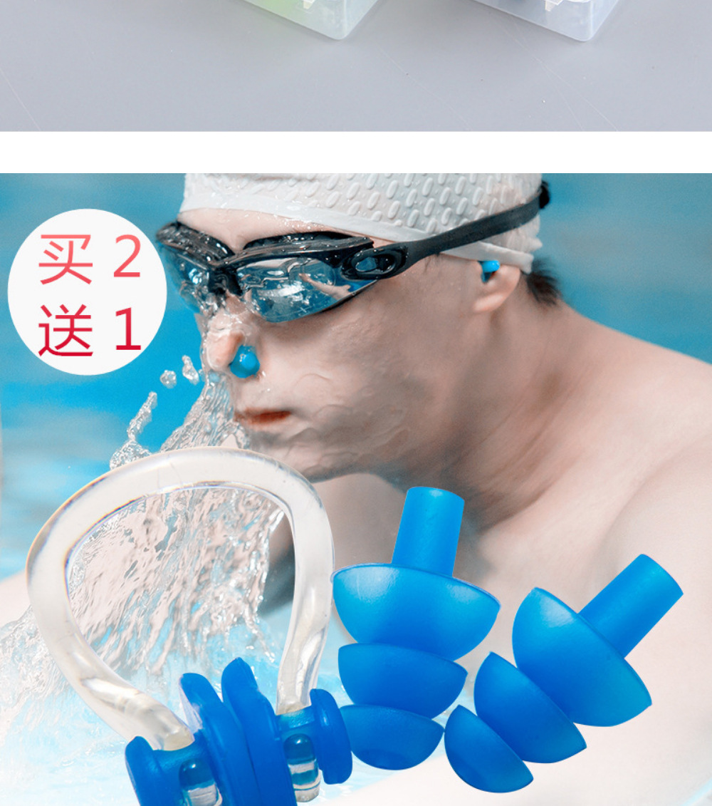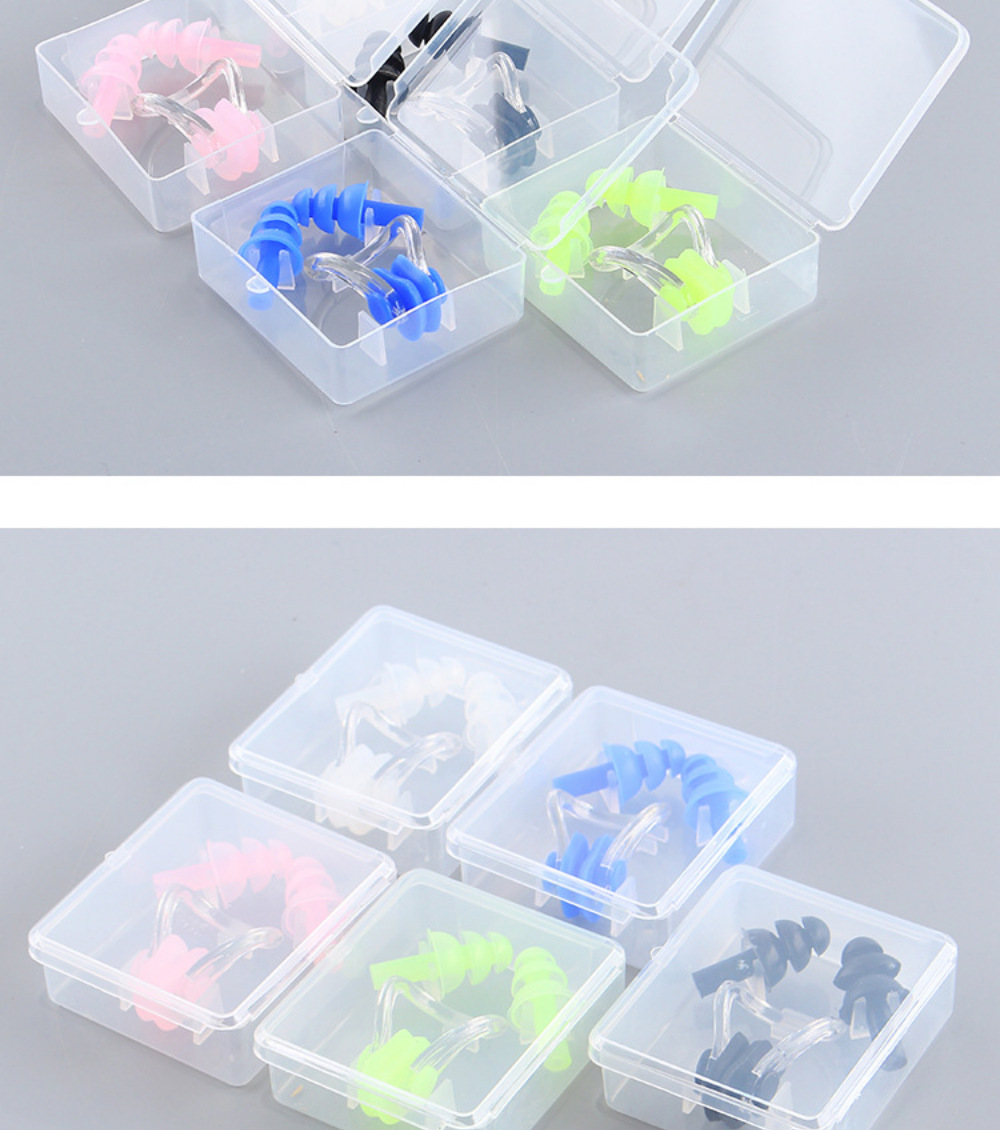박스형 수영 코 클립 귀마개 방진 방수 실리콘 소프트 귀마개 코 클립 세트 성인 블랙 블루 대형스토어 가기