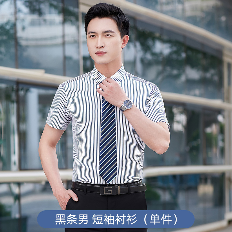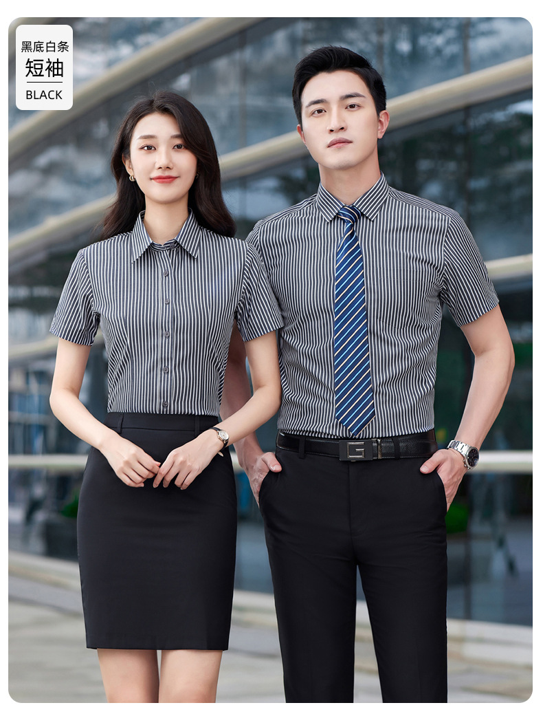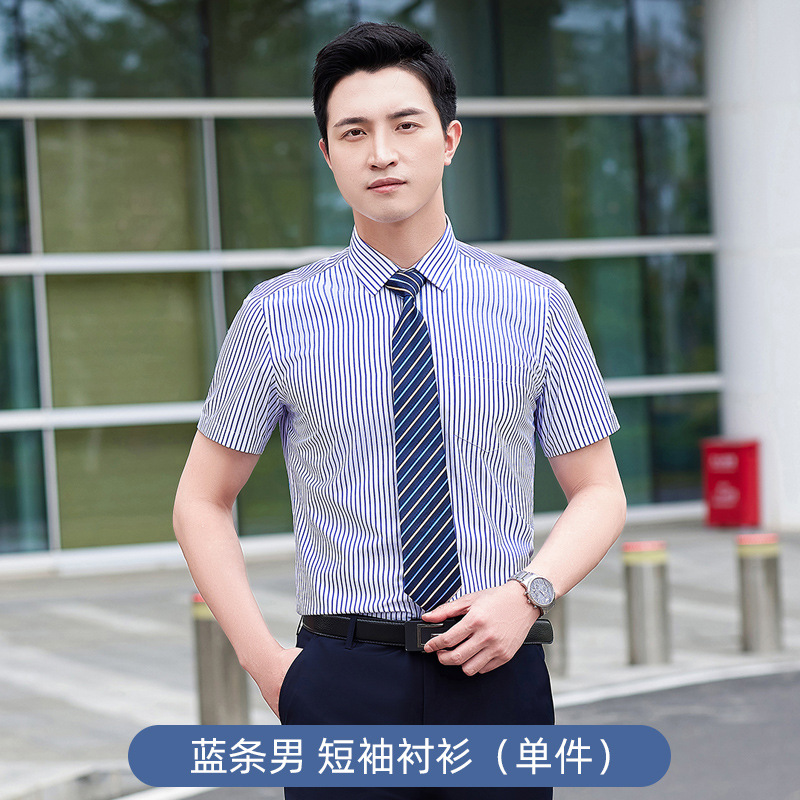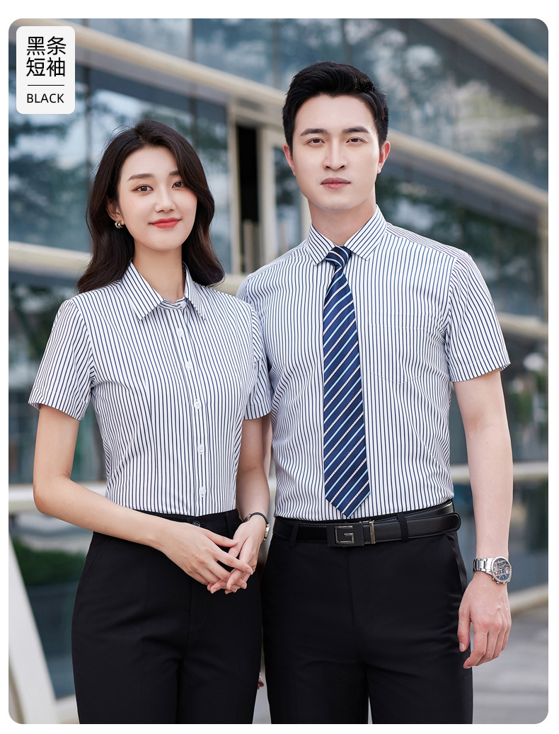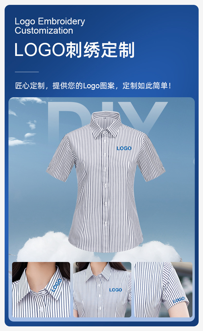 블루 스트라이프 셔츠 여성용 반팔 전문 원피스 셔츠 슬림핏 기질 비 다림질 슬리밍 작업복 반팔 작업복스토어 가기
