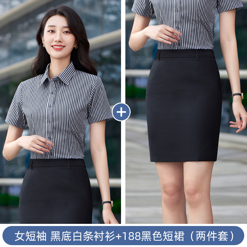 • 검은 색 바탕에 흰색 줄무늬가있는 여성용 반소매 (셔츠 + 188 검은 색 치마)