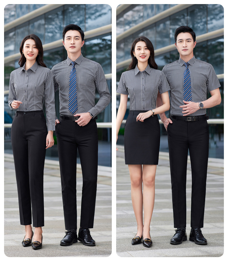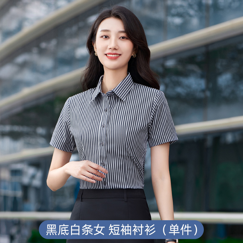 블루 스트라이프 셔츠 여성용 반팔 전문 원피스 셔츠 슬림핏 기질 비 다림질 슬리밍 작업복 반팔 작업복