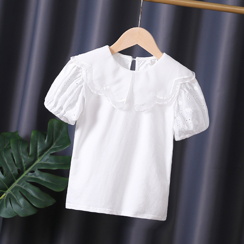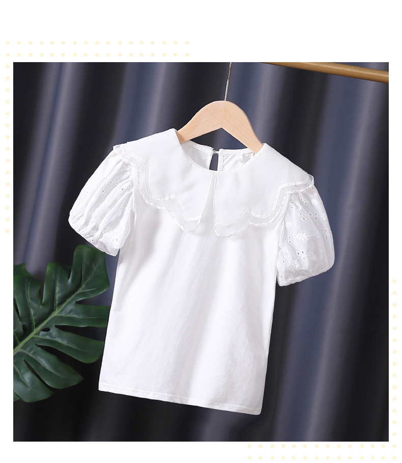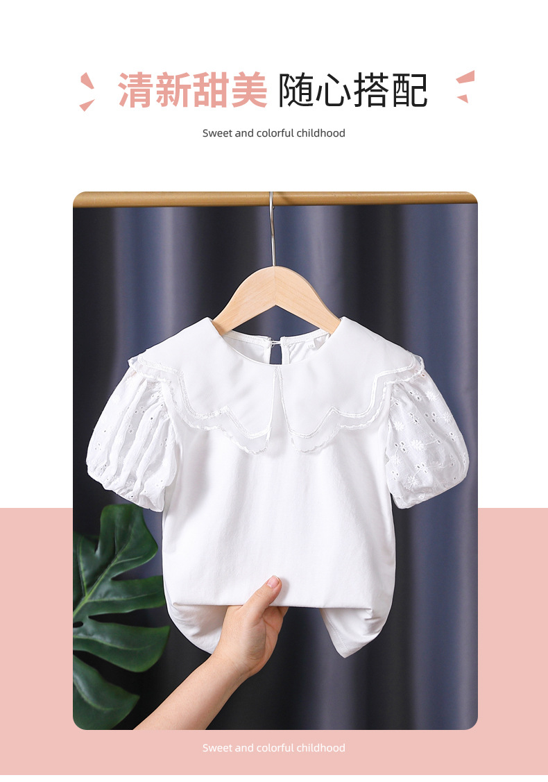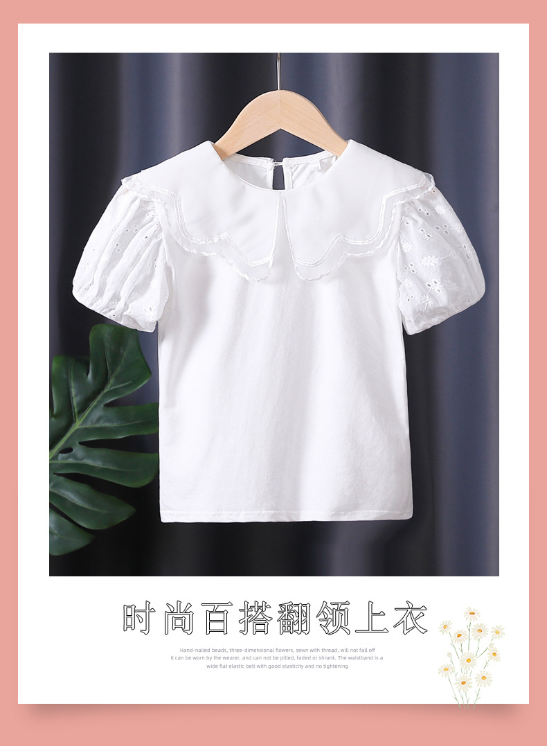 여름 아동 의류 신제품 소녀 여름 반팔 코튼 탑 아동 여름 의류 얼음 도자기 코튼 레이스 인형 칼라 티셔츠 7