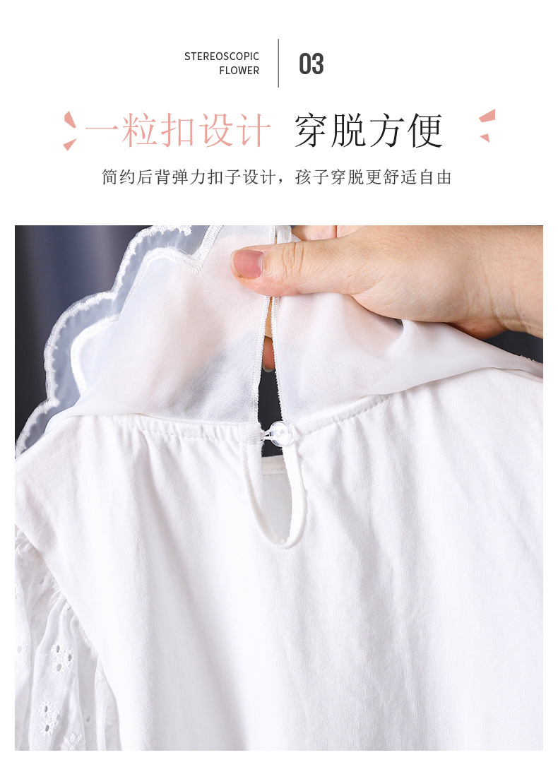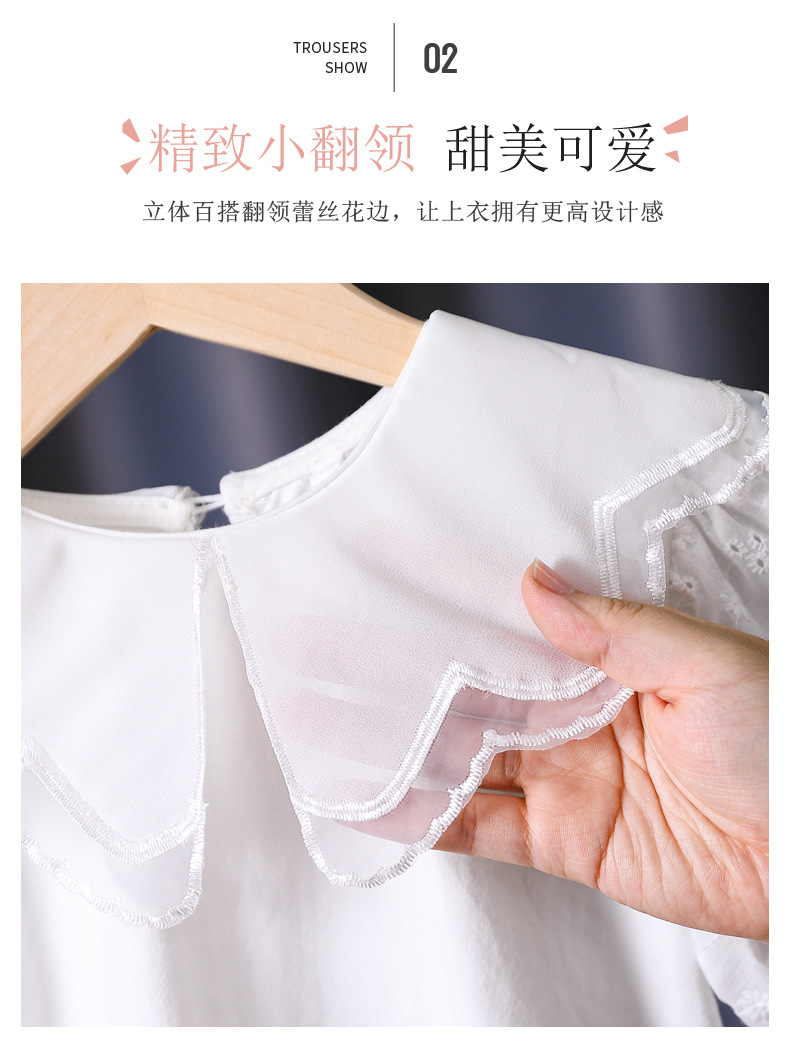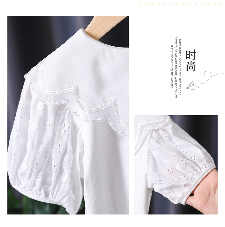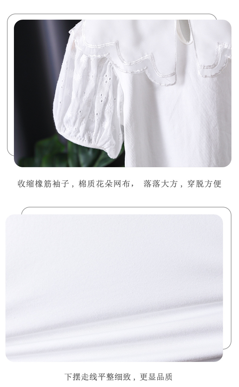 여름 아동 의류 신제품 소녀 여름 반팔 코튼 탑 아동 여름 의류 얼음 도자기 코튼 레이스 인형 칼라 티셔츠 7