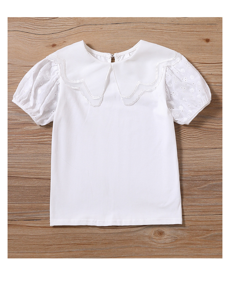 여름 아동 의류 신제품 소녀 여름 반팔 코튼 탑 아동 여름 의류 얼음 도자기 코튼 레이스 인형 칼라 티셔츠 7스토어 가기