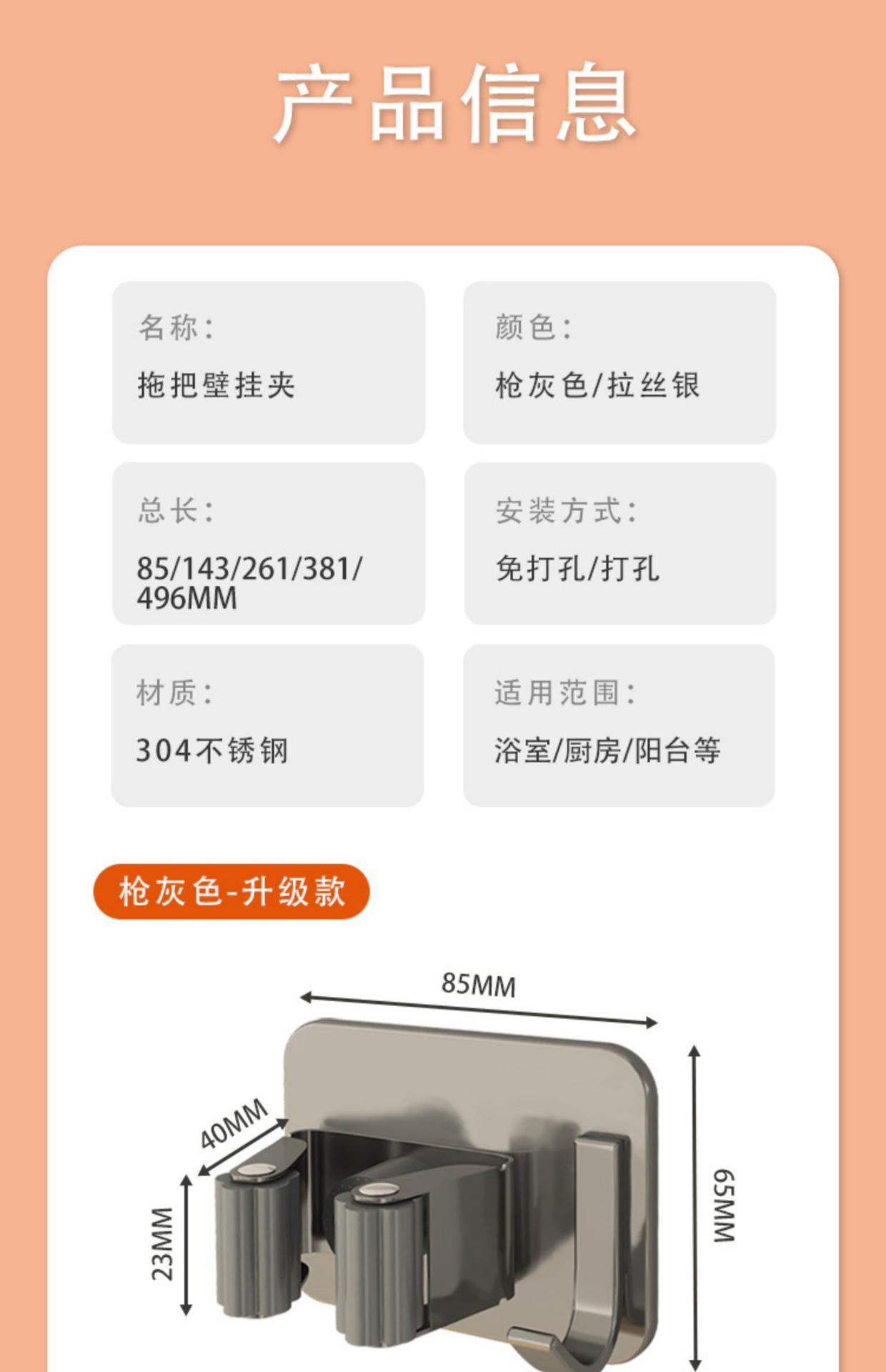 • 걸레 벽 클립 건 그레이-5 팩