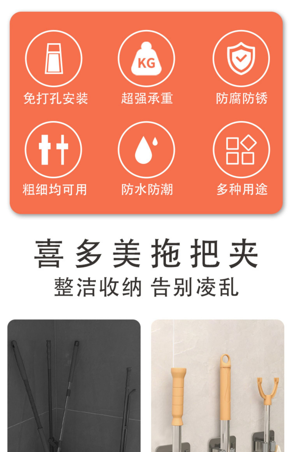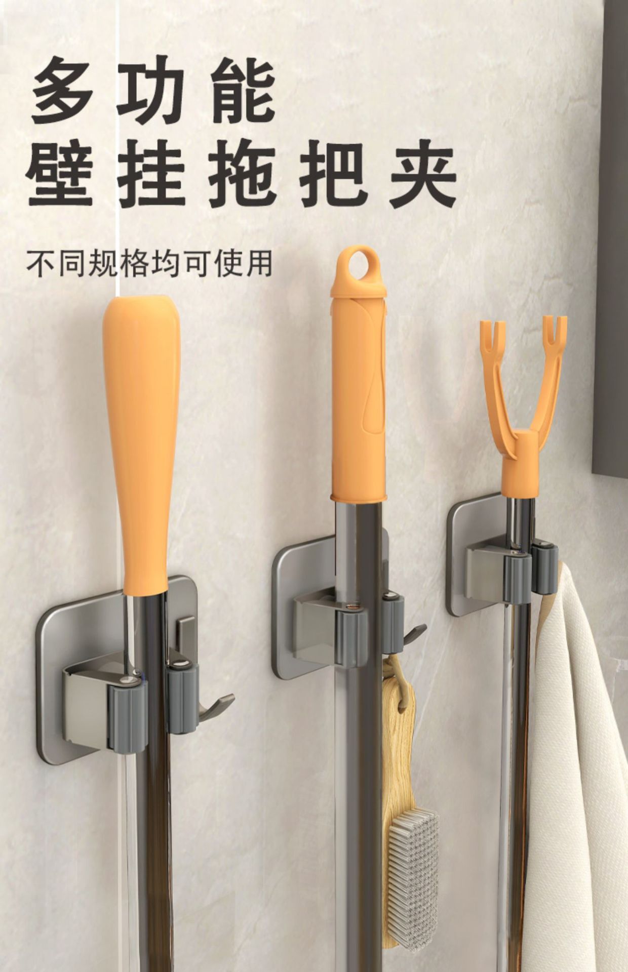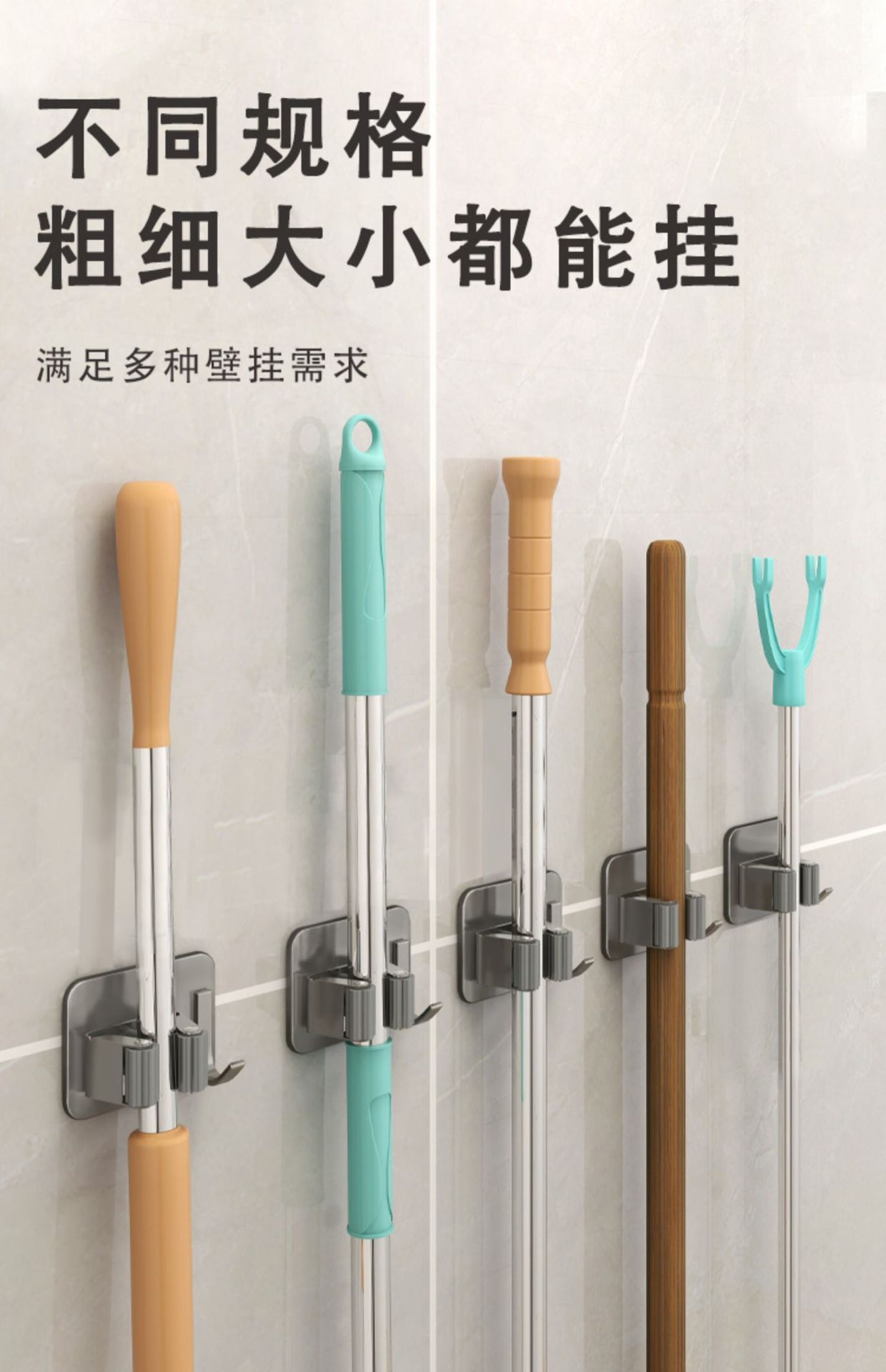 걸레 벽걸이 클립 후크 펀치 없는 화장실 벽 스냅 고정 걸이 걸레 빗자루 보관 유물스토어 가기