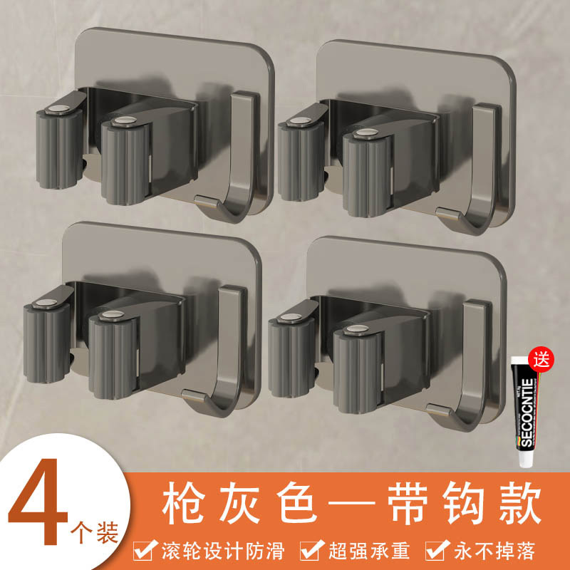 • 걸레 벽걸이 클립 건 그레이-4 팩