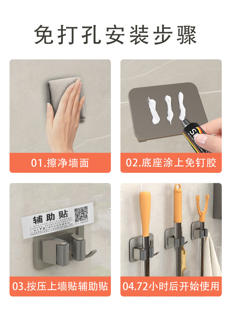 무타공 걸레걸이, 욕실 수납용품, 접착식 걸이, 빗자루 걸이, 강력 접착 벽걸이 걸레 클립