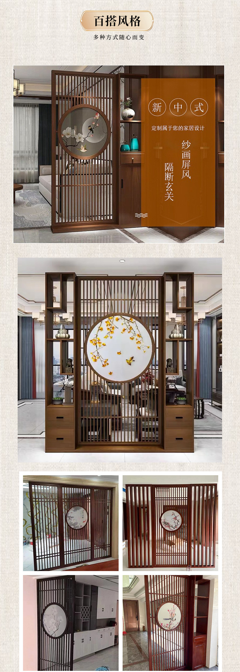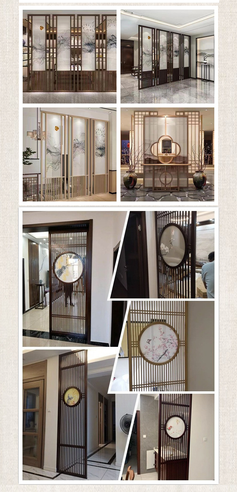 중국식 현관 스크린, 거실 현관, 속이 빈 사무실 칸막이, 원목 장식품, 그릴, 신중국풍