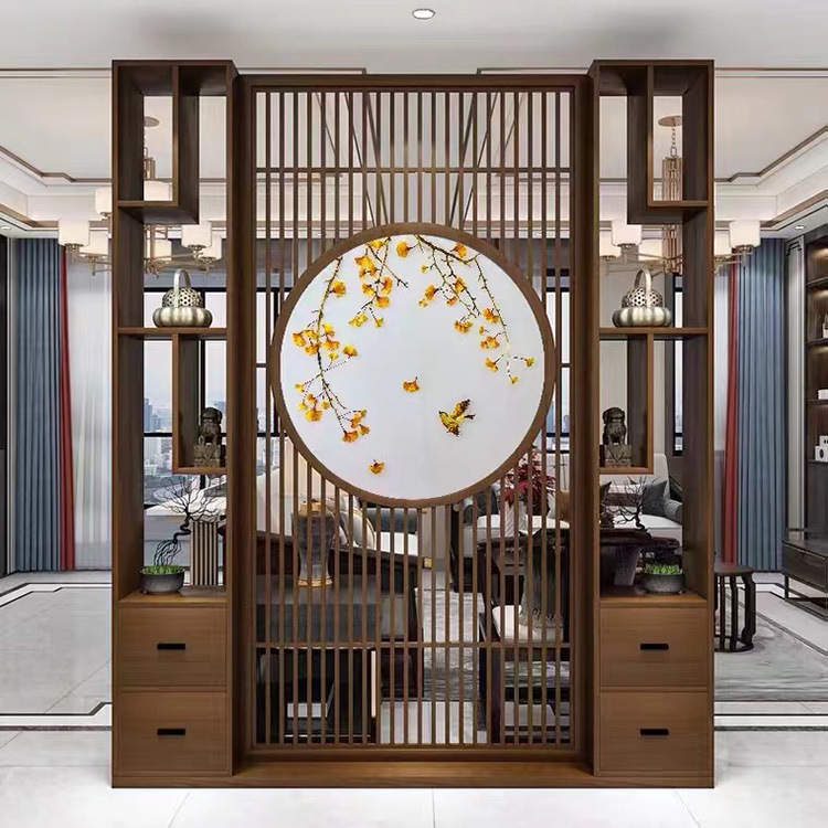 중국식 현관 스크린, 거실 현관, 속이 빈 사무실 칸막이, 원목 장식품, 그릴, 신중국풍스토어 가기