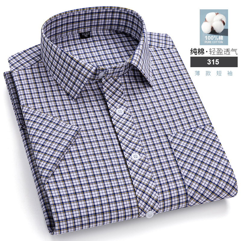 100 면 여름 얇은 남자의 반팔 셔츠 젊은이와 중년 격자 무늬 캐주얼 셔츠 아빠 옷 도매 재고