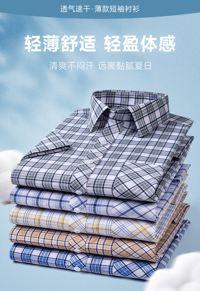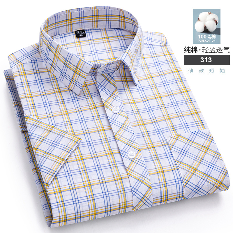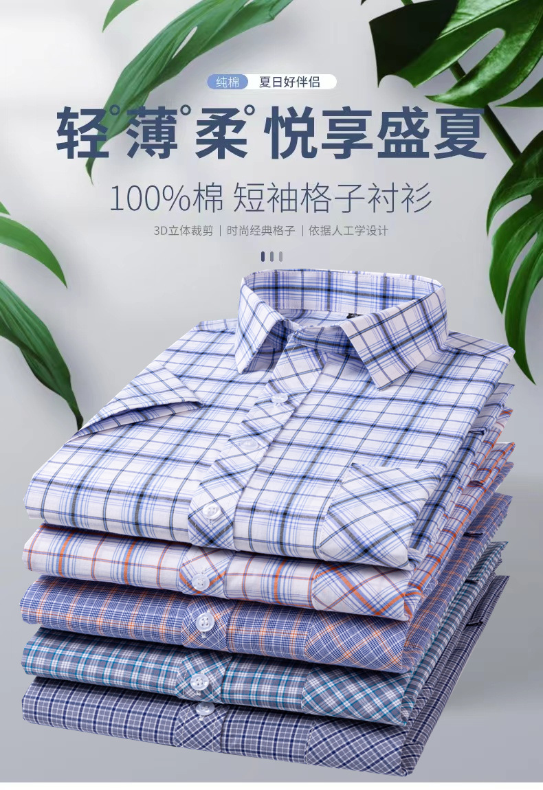 100 면 여름 얇은 남자의 반팔 셔츠 젊은이와 중년 격자 무늬 캐주얼 셔츠 아빠 옷 도매 재고스토어 가기