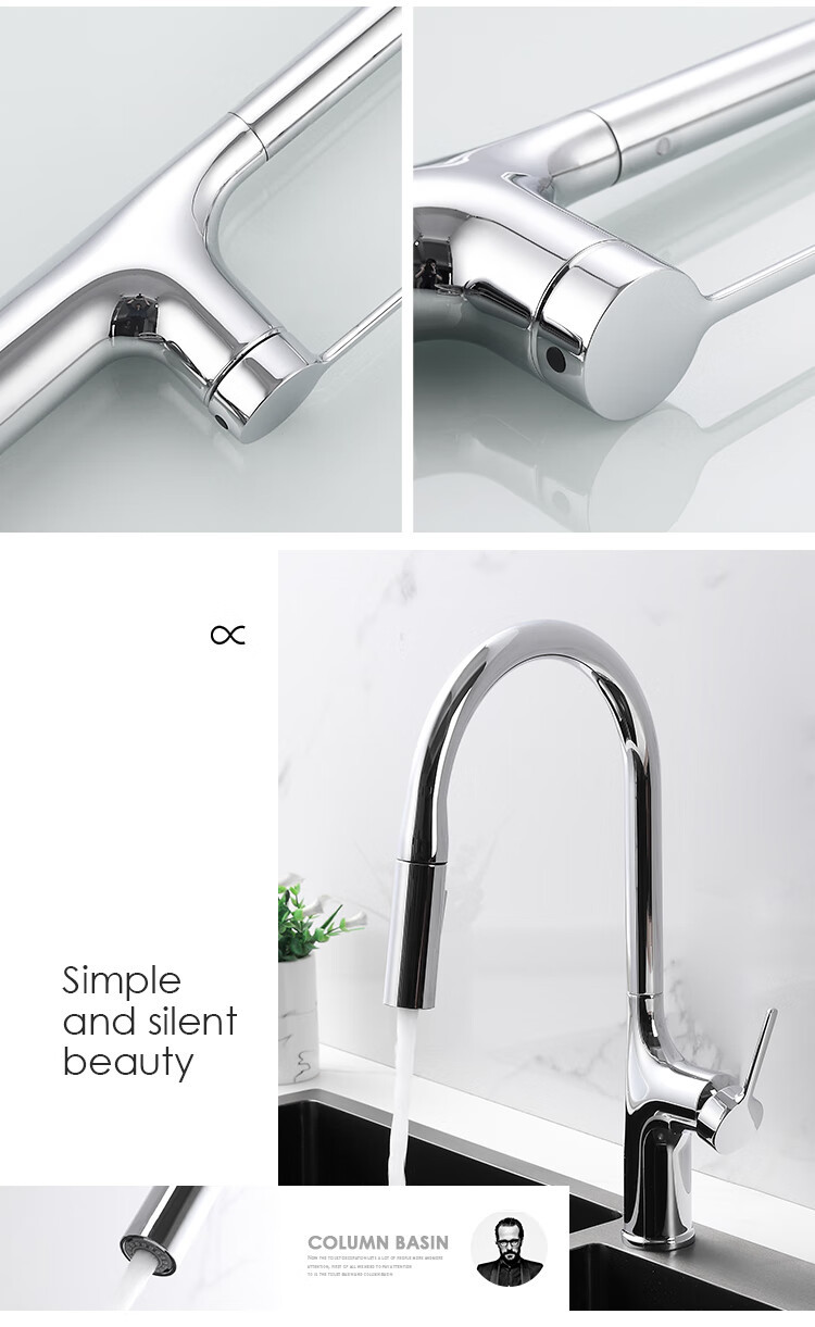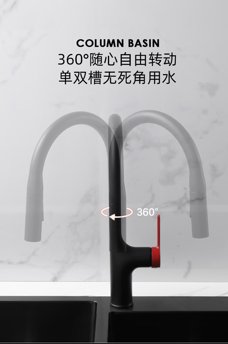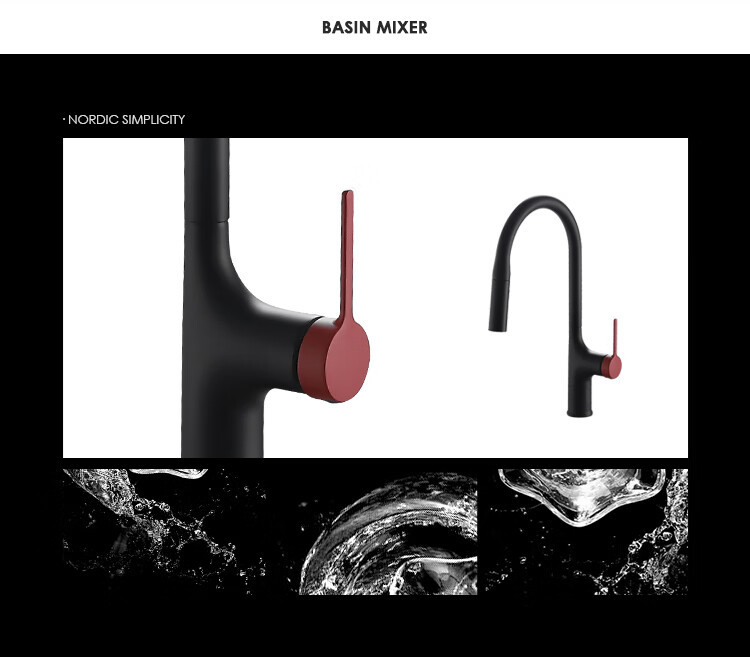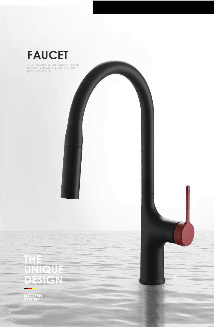 GOTHIC 올 구리 주방 수도꼭지 풀 아웃 로타리 멀티 기어 물 콘센트 모드 블랙