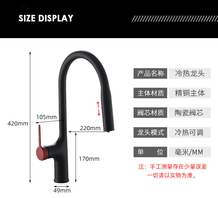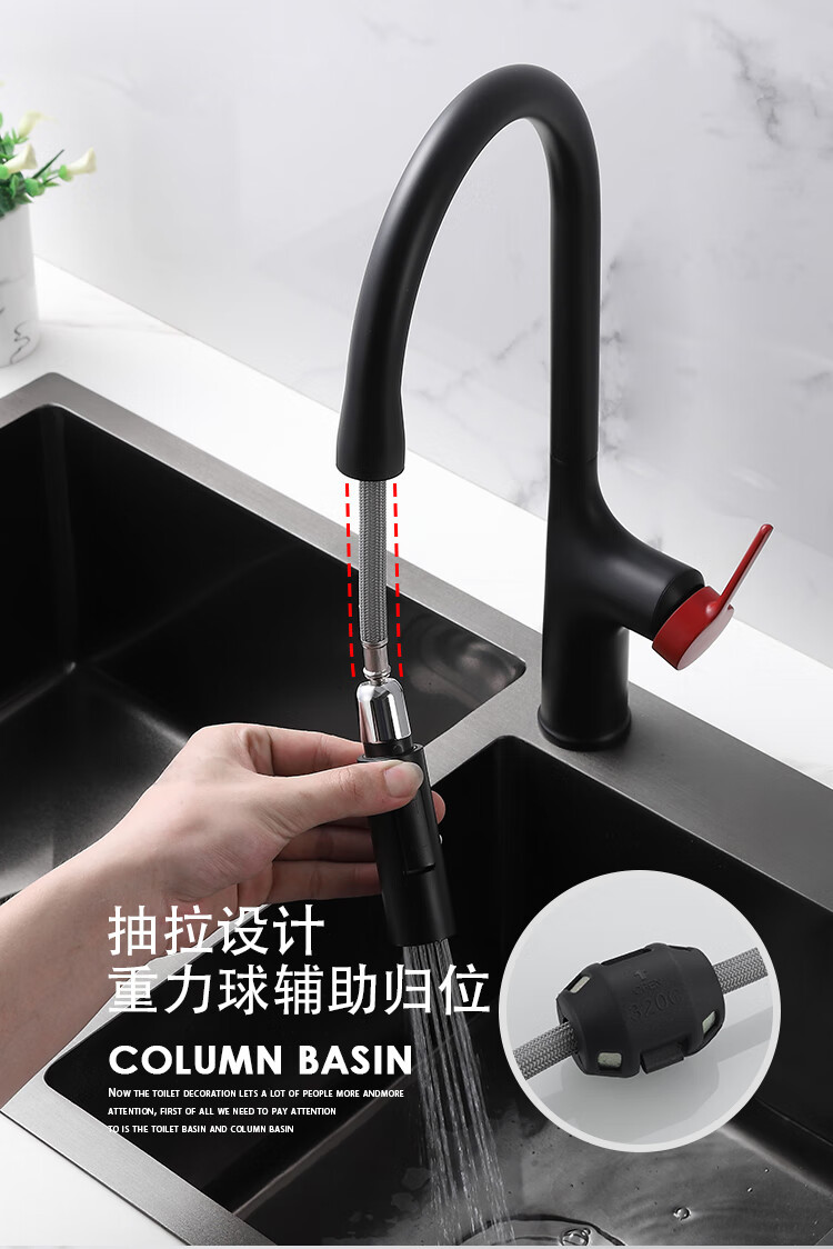 GOTHIC 올 구리 주방 수도꼭지 풀 아웃 로타리 멀티 기어 물 콘센트 모드 블랙스토어 가기