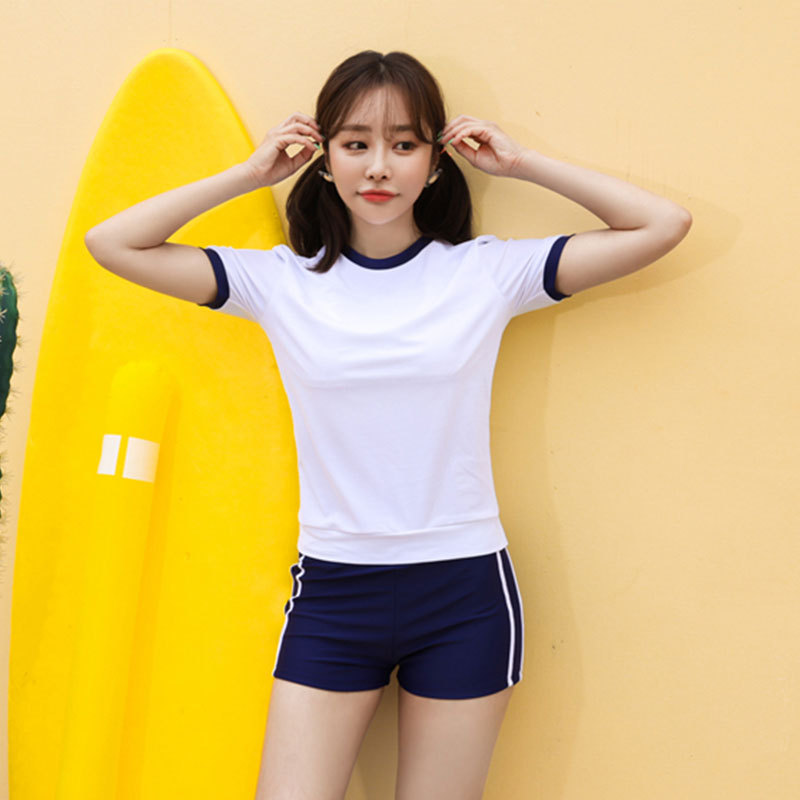 반팔 수영복 여성용 새로운 배꼽 덮힌 슬림핏 수영복 온천 보수 학생 심플 컬러 매칭 보수 수영복스토어 가기