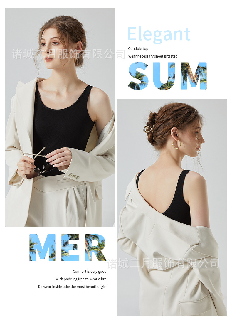 가슴 패드가 있는 여성용 면 브라탑, 화이트 이너웨어, 아름다운 등라인, 여름용 통기성 백리스 탑