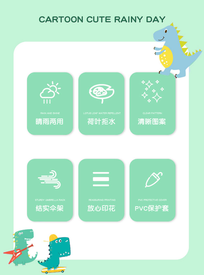 2024 작은 공룡 곰 개구리 패턴으로 방수 커버 아이스크림 손잡이가있는 새로운 어린이 햇볕이 잘 드는 우산스토어 가기