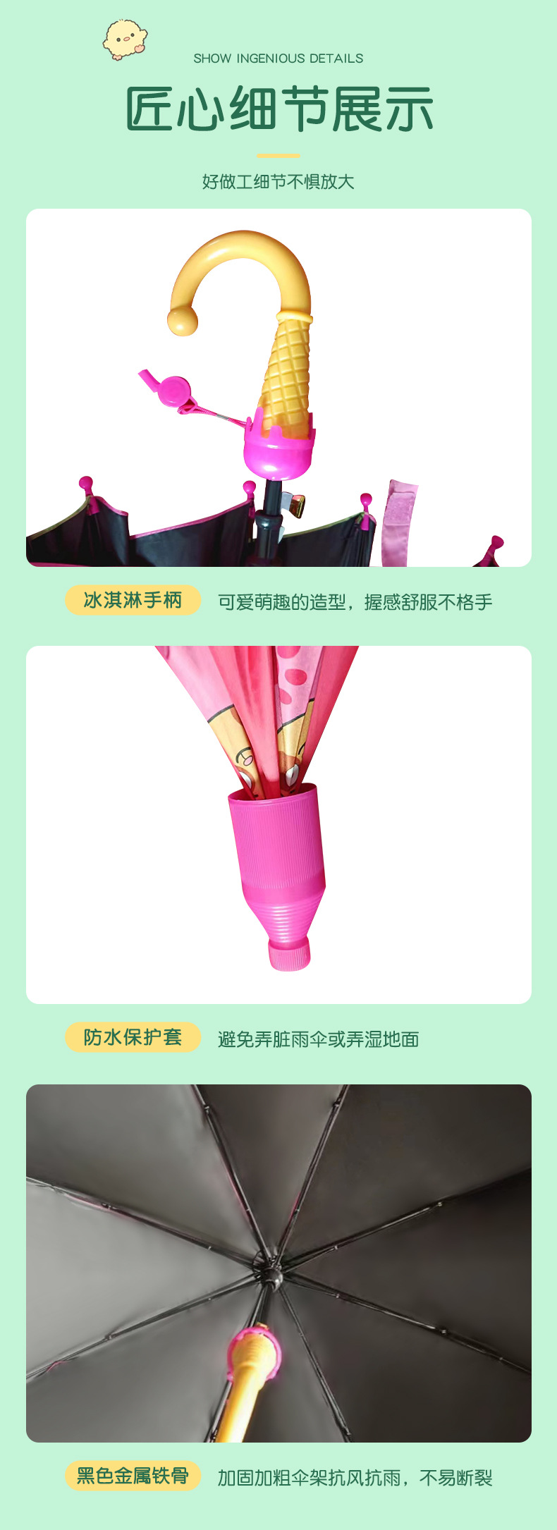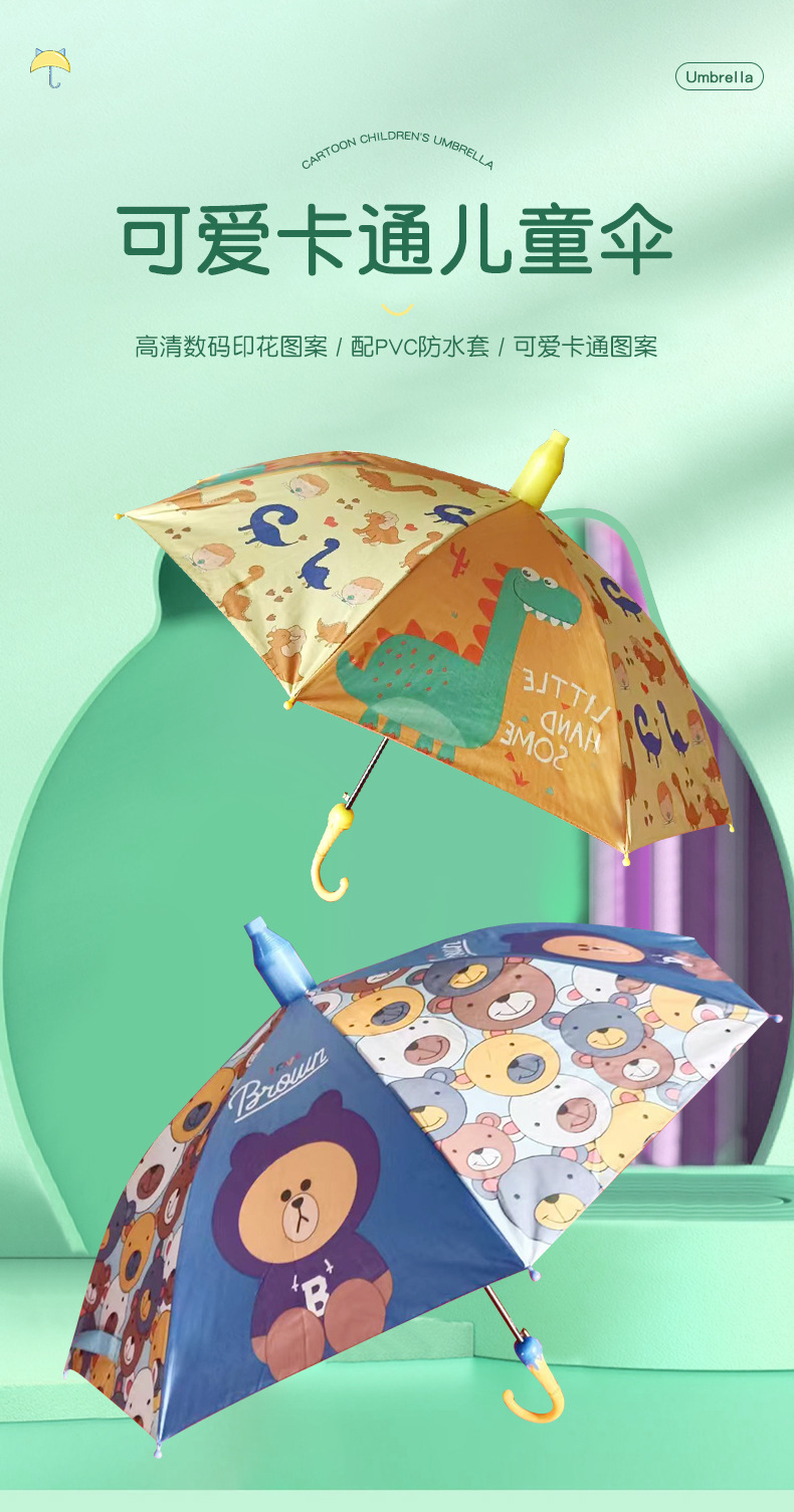 2024 작은 공룡 곰 개구리 패턴으로 방수 커버 아이스크림 손잡이가있는 새로운 어린이 햇볕이 잘 드는 우산