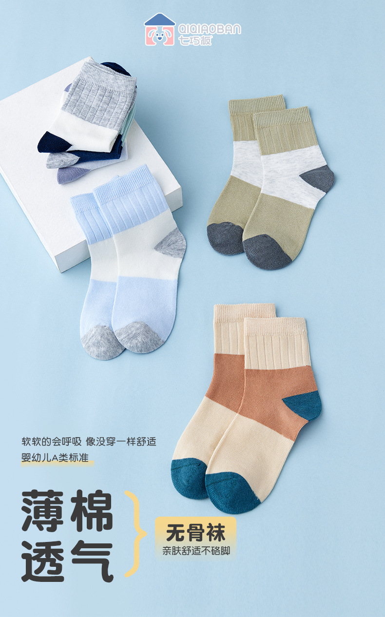 Tangram 어린이 양말 봄과 여름 빗질면 얇은 튜브 양말 중소 어린이 얇은면 어린이 양말 아기 양말스토어 가기