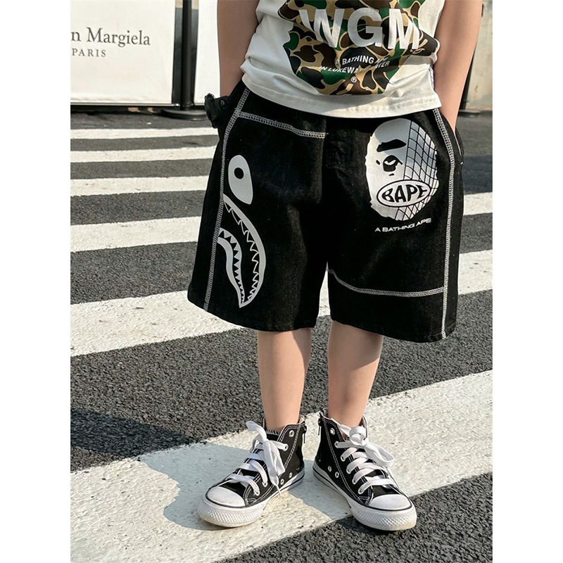 일본 트렌디 브랜드 2025 여름 아동복 남녀공용 중대형 아동바지 프린트 청바지 반바지 5부바지