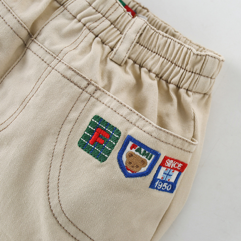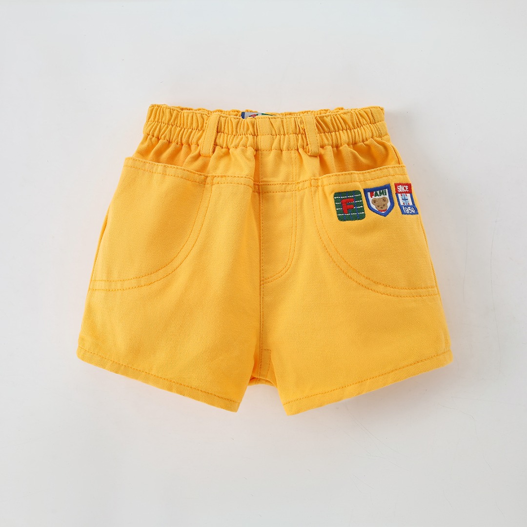 여름 MIKI 중공업 자수 작은 반바지 면화 데님 노란색 카키 소년과 소년의 엉덩이 바지 만화 바닥