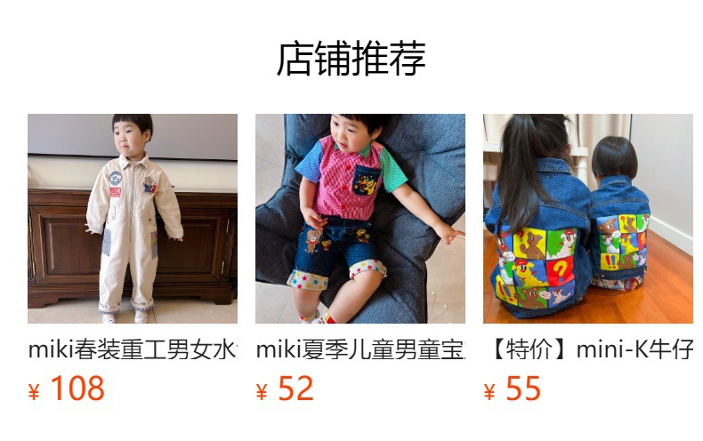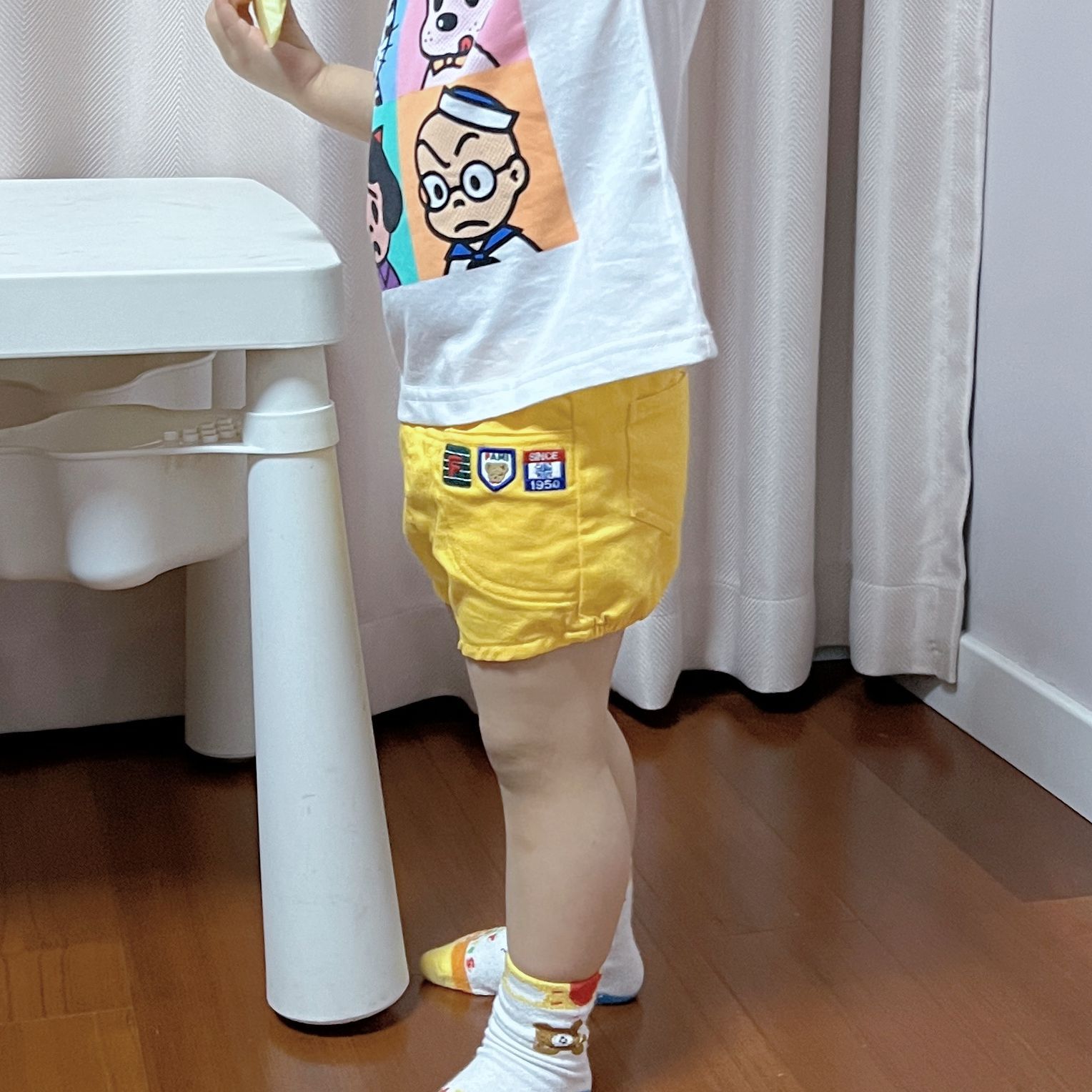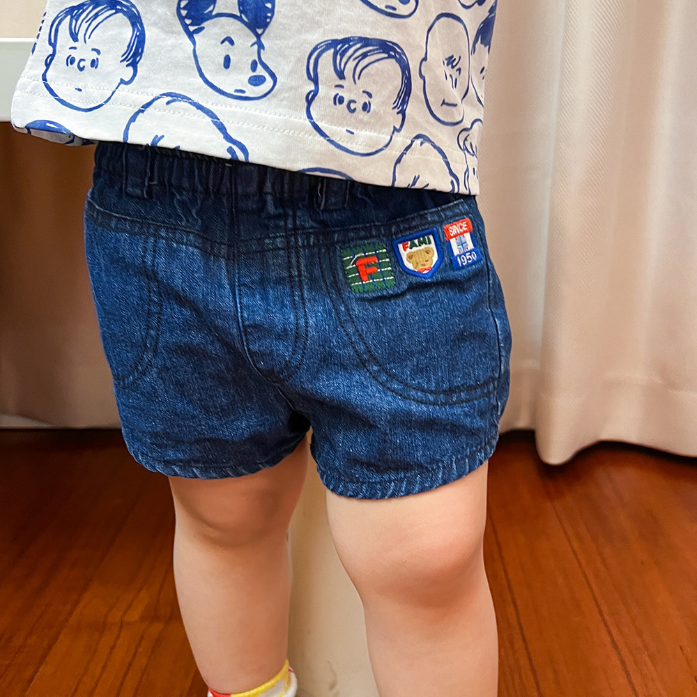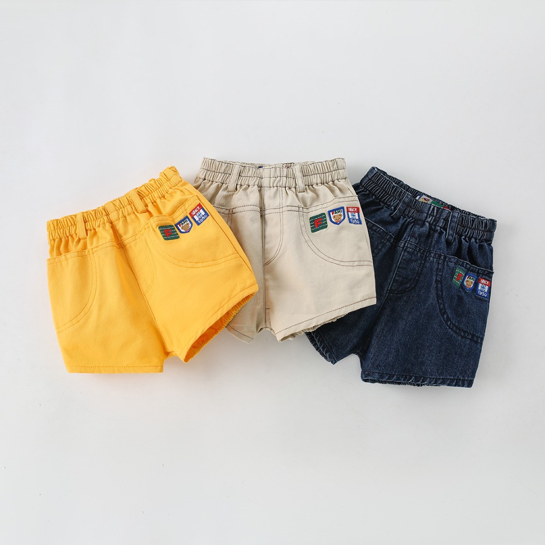 여름 MIKI 중공업 자수 작은 반바지 면화 데님 노란색 카키 소년과 소년의 엉덩이 바지 만화 바닥스토어 가기
