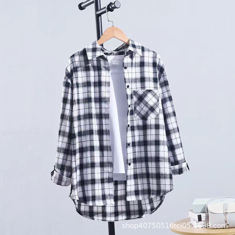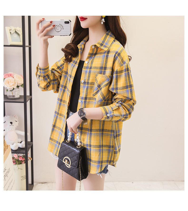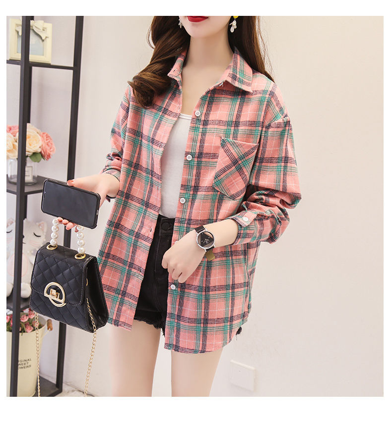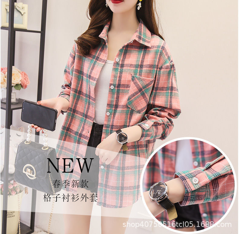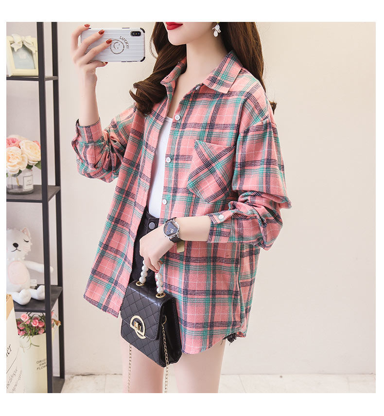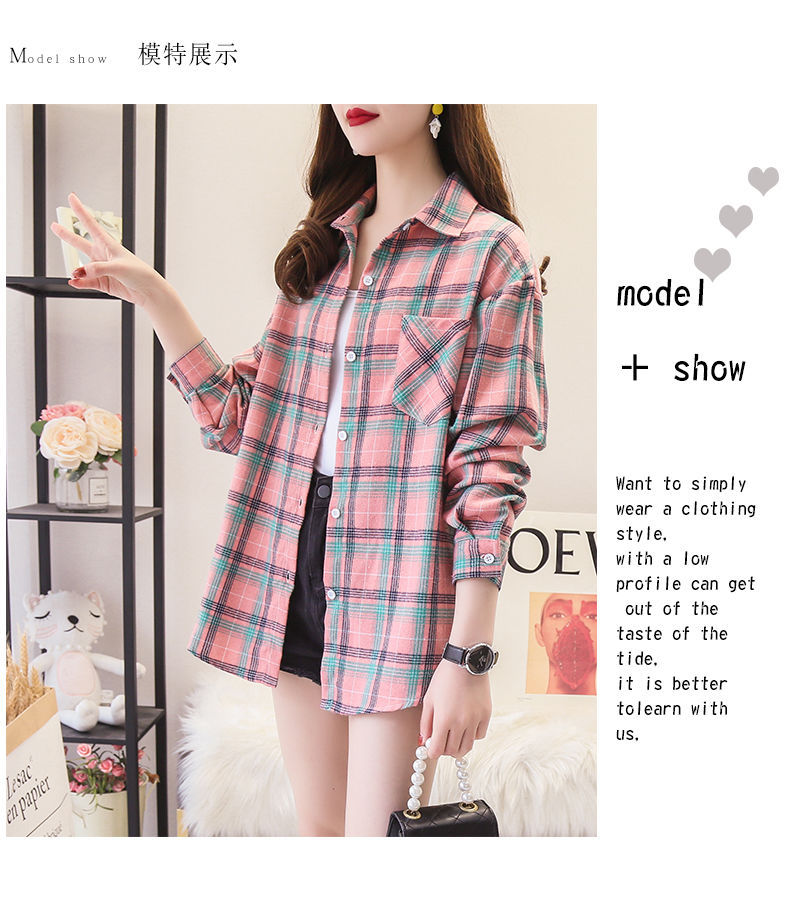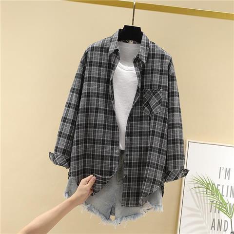 체크무늬 셔츠 여성용 루즈한 긴팔 새로운 모든 매치 캐주얼 학생 봄과 가을 플러스 사이즈 한국식 셔츠 코트 트렌디스토어 가기