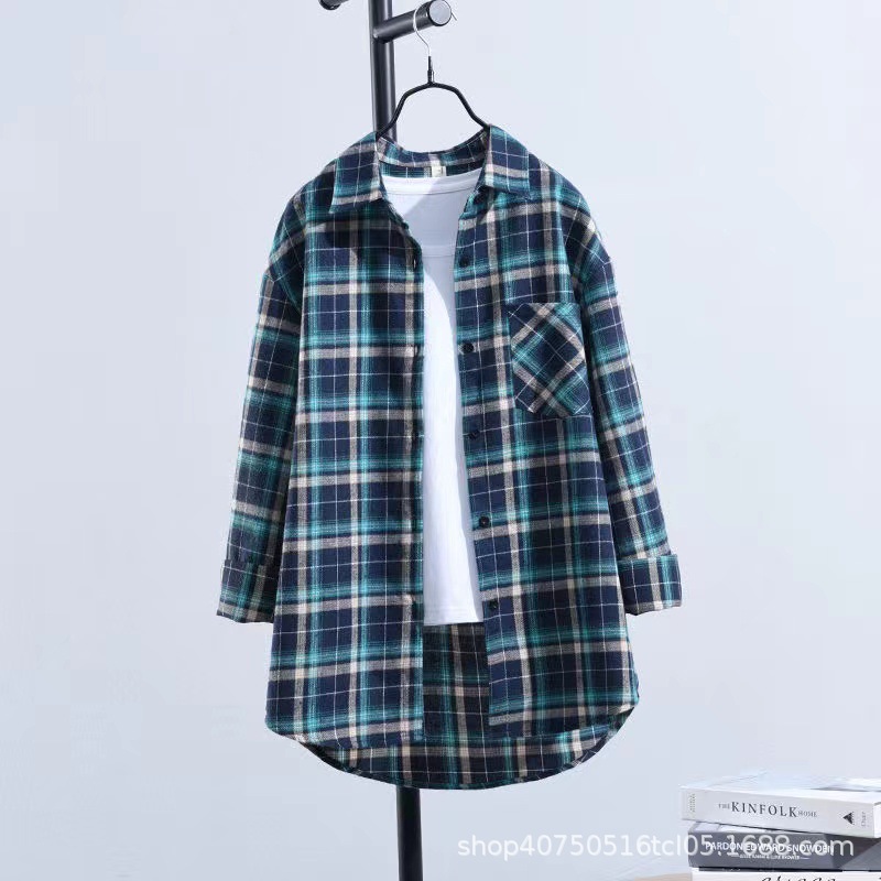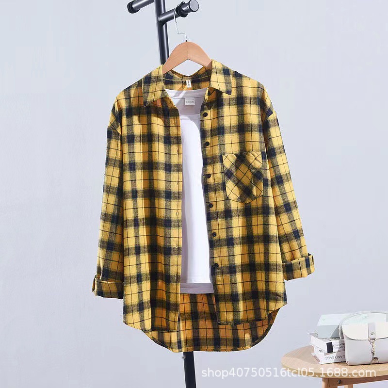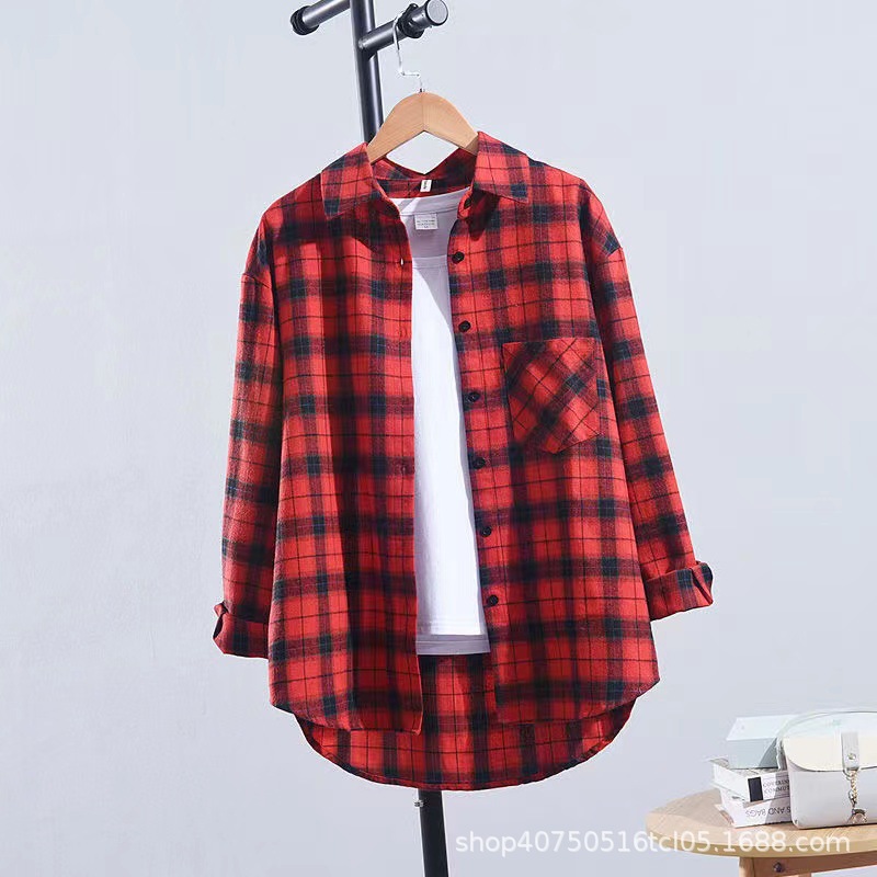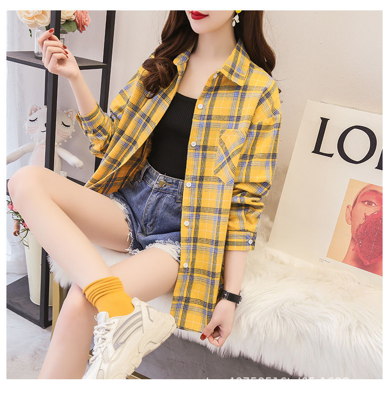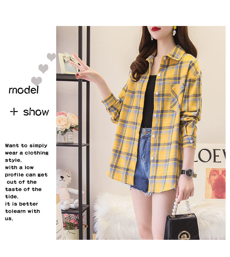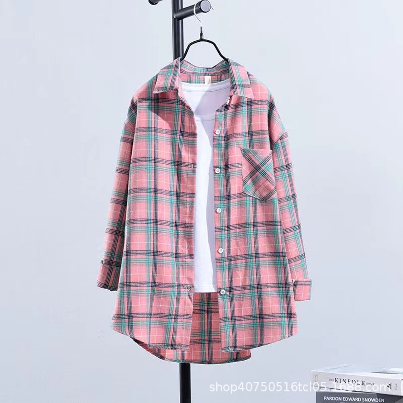 체크무늬 셔츠 여성용 루즈한 긴팔 새로운 모든 매치 캐주얼 학생 봄과 가을 플러스 사이즈 한국식 셔츠 코트 트렌디스토어 가기