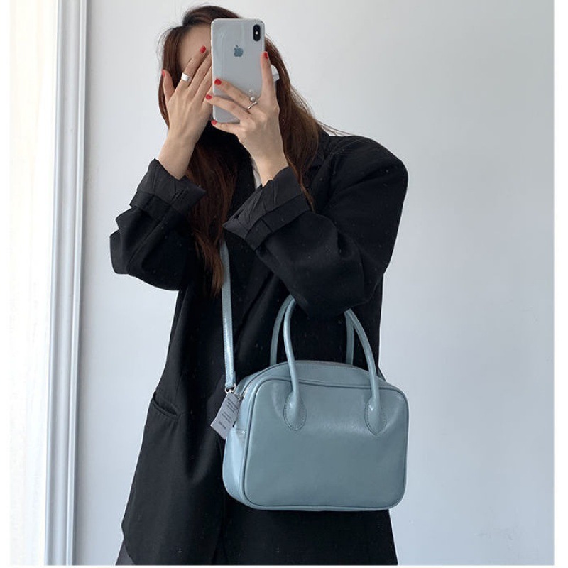 2021 한국 봄과 여름 새로운 모든 매치 왁스 가죽 숄더 여성 가방 제니 같은 스타일 핸드백 캐주얼 크로스바디 백스토어 가기