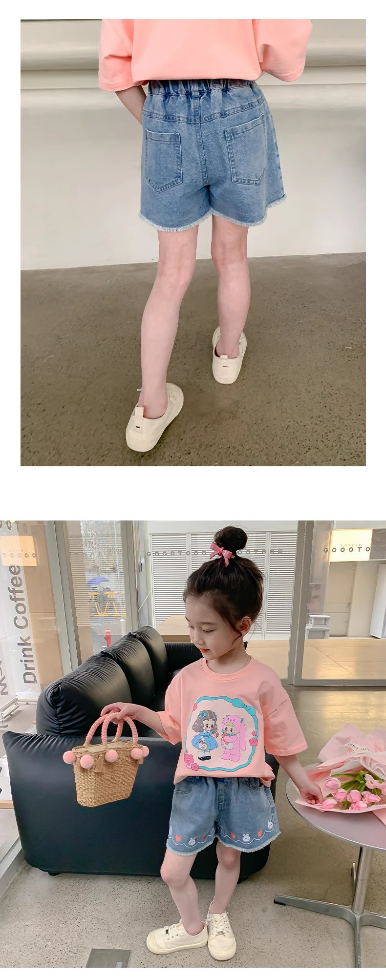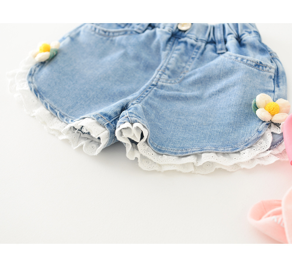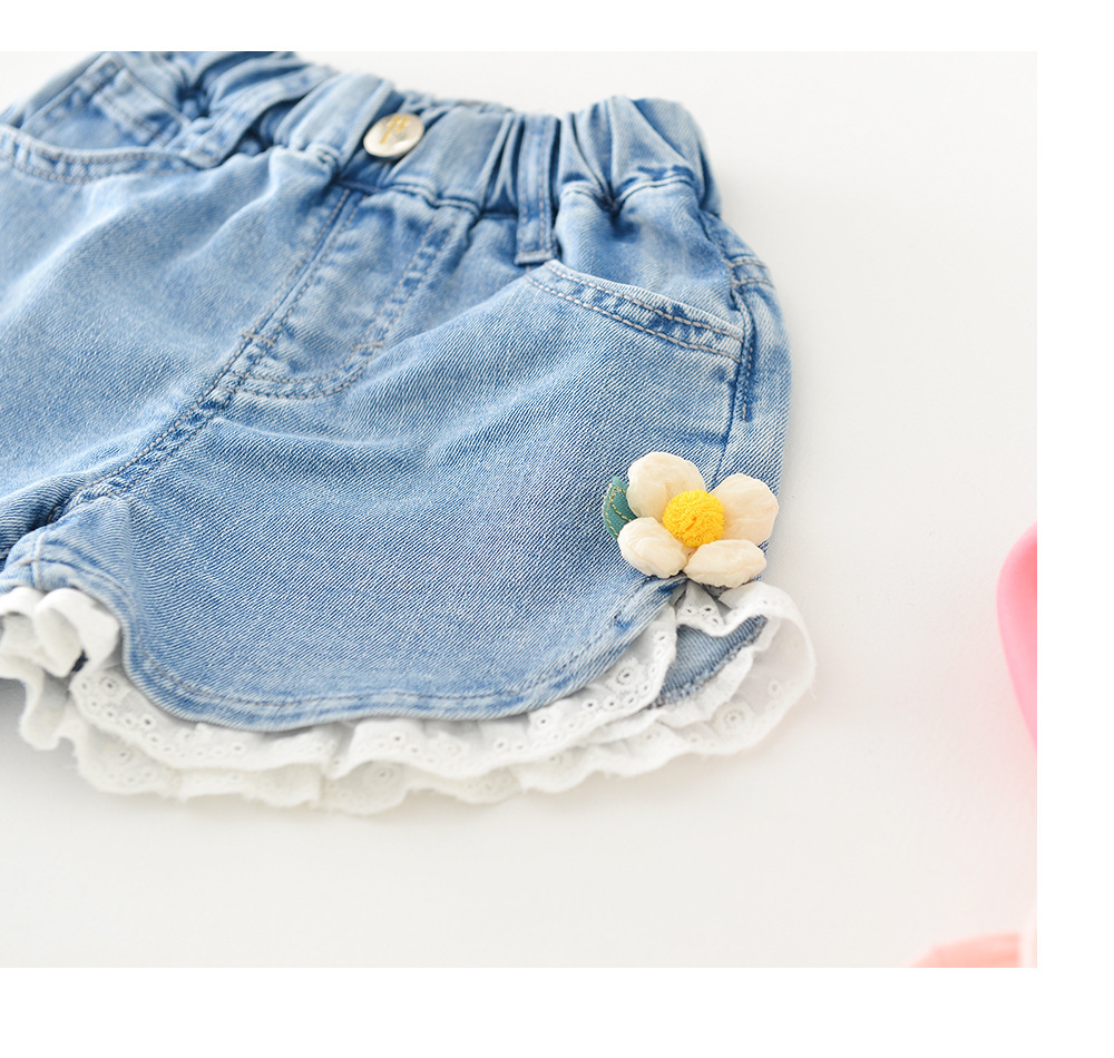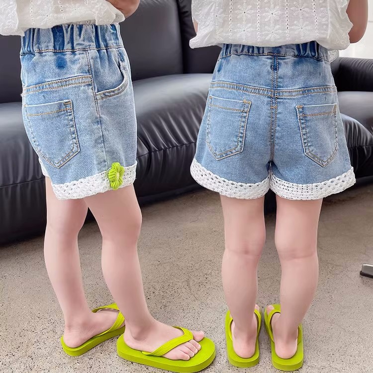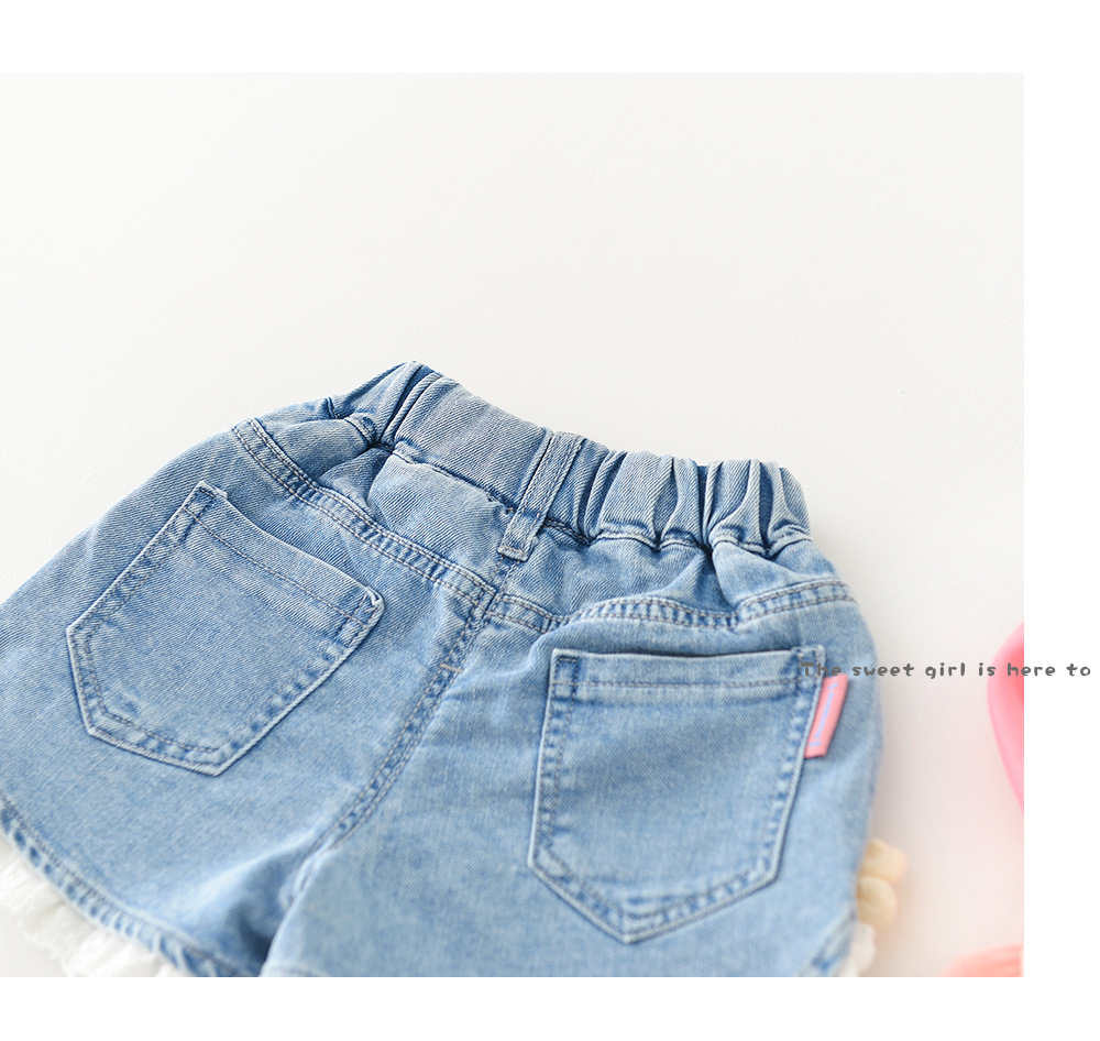 2024 여름 새로운 아기 아동복 소녀 달콤한 반바지 어린이 레이스 꽃 얇은 데님 핫 팬츠스토어 가기