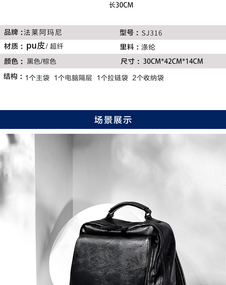 Falai Armani 남성용 백팩, 트렌디하고 다재다능한 남성용 컴퓨터 가방, 대용량 여행 가방, 남성용 캐주얼 가죽 가방스토어 가기