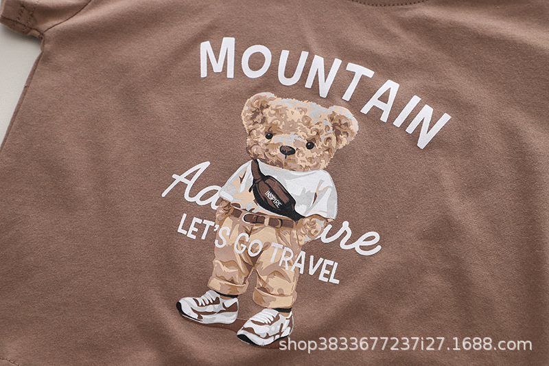 2023 여름 신상 아동 반팔 투피스 반바지 반팔 곰 가방 세트 공장 직매스토어 가기