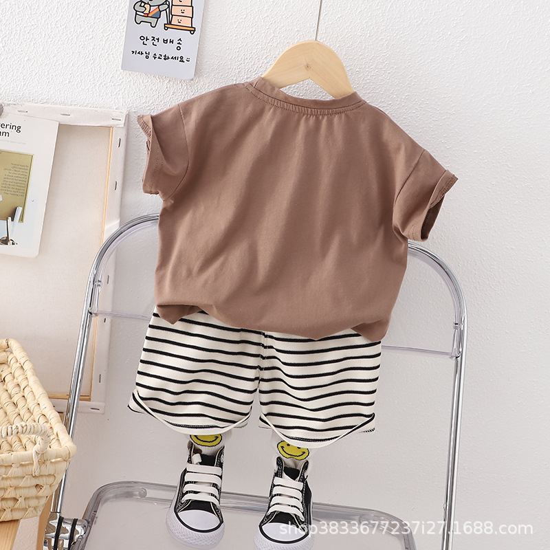 2023 여름 신상 아동 반팔 투피스 반바지 반팔 곰 가방 세트 공장 직매