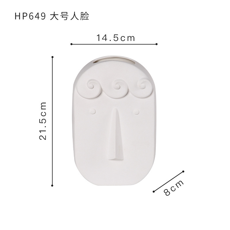 북유럽 화이트 세라믹 장식 말린 꽃병 입구 데스크탑 연구 귀여운 얼굴 장식품 거실 꽃 배열