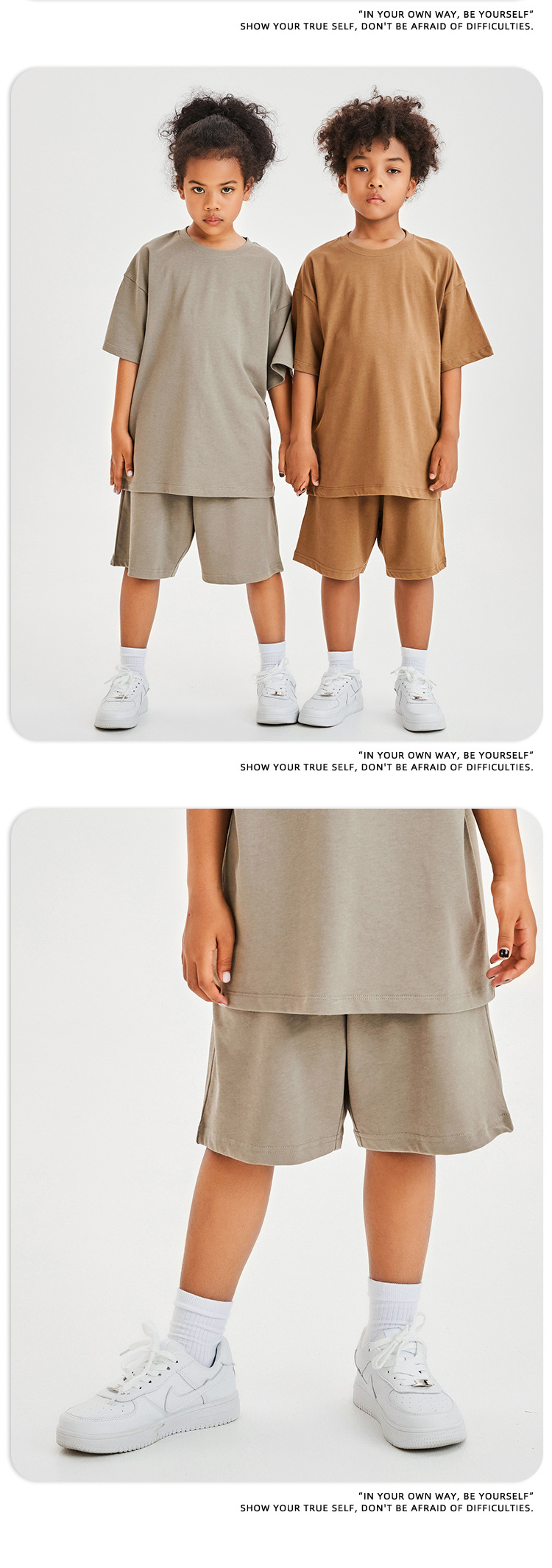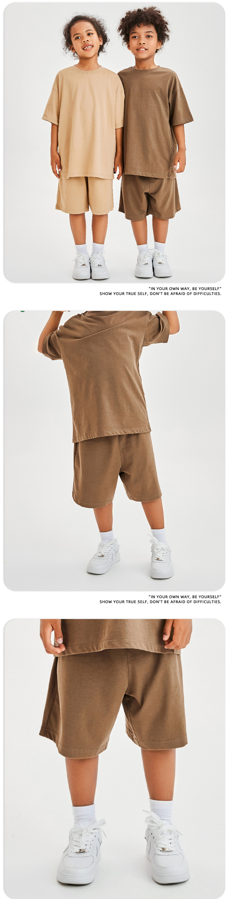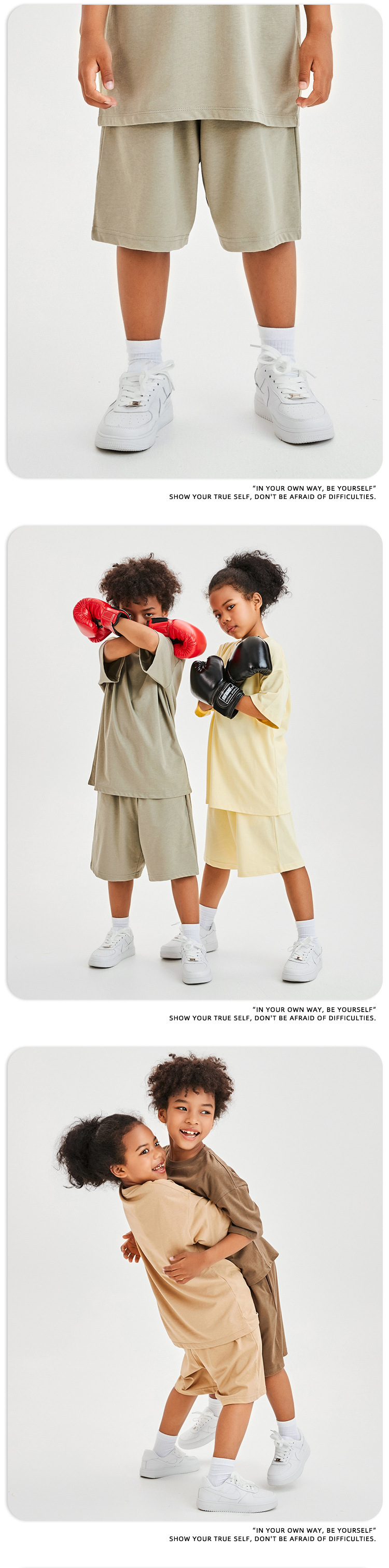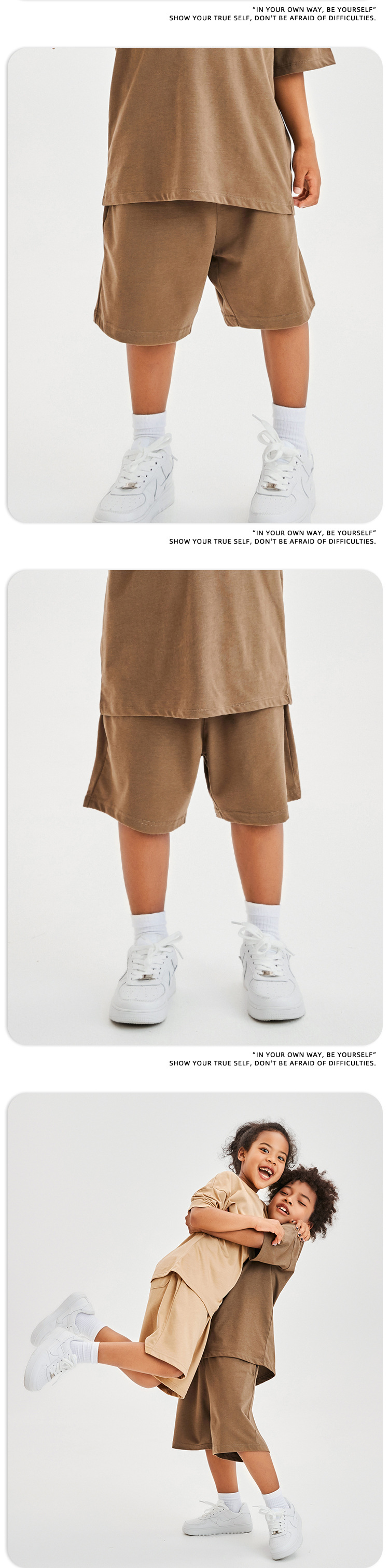 틸라니 아동복 유럽 및 미국 트렌드 브랜드 대지색 시리즈 여름 230G 순면 아동 반바지 도매 캐주얼 다용도