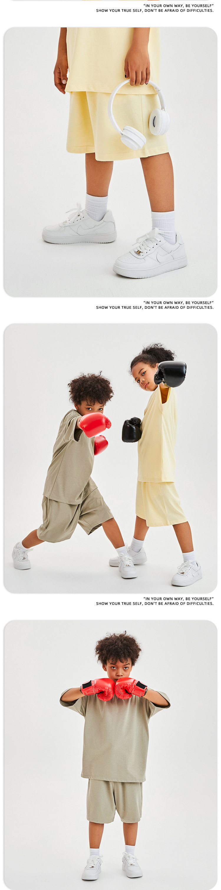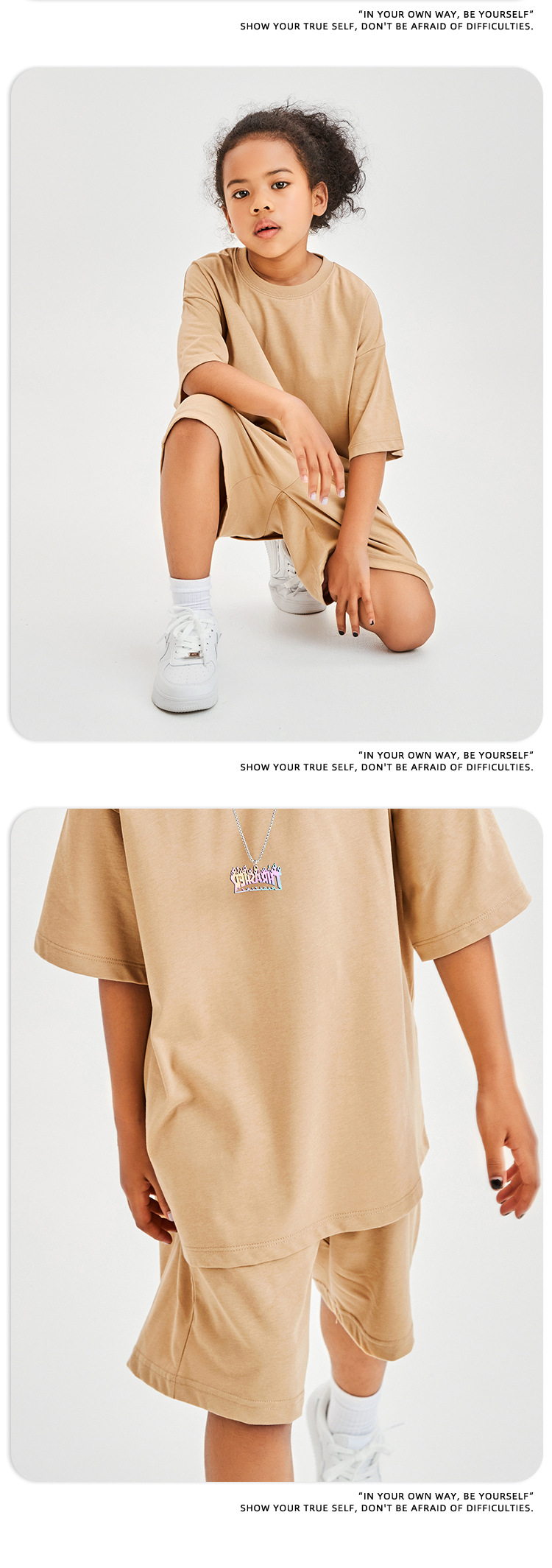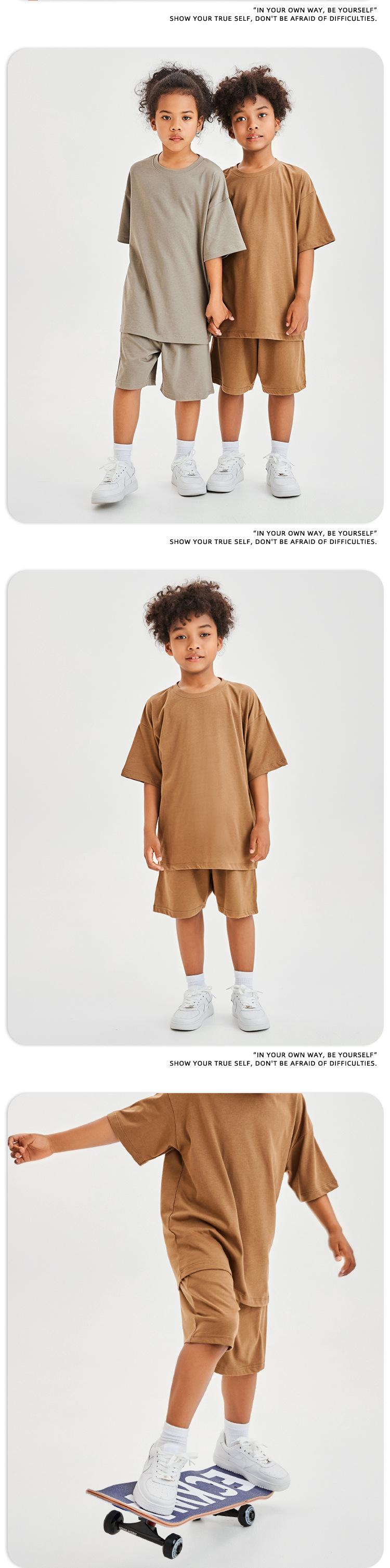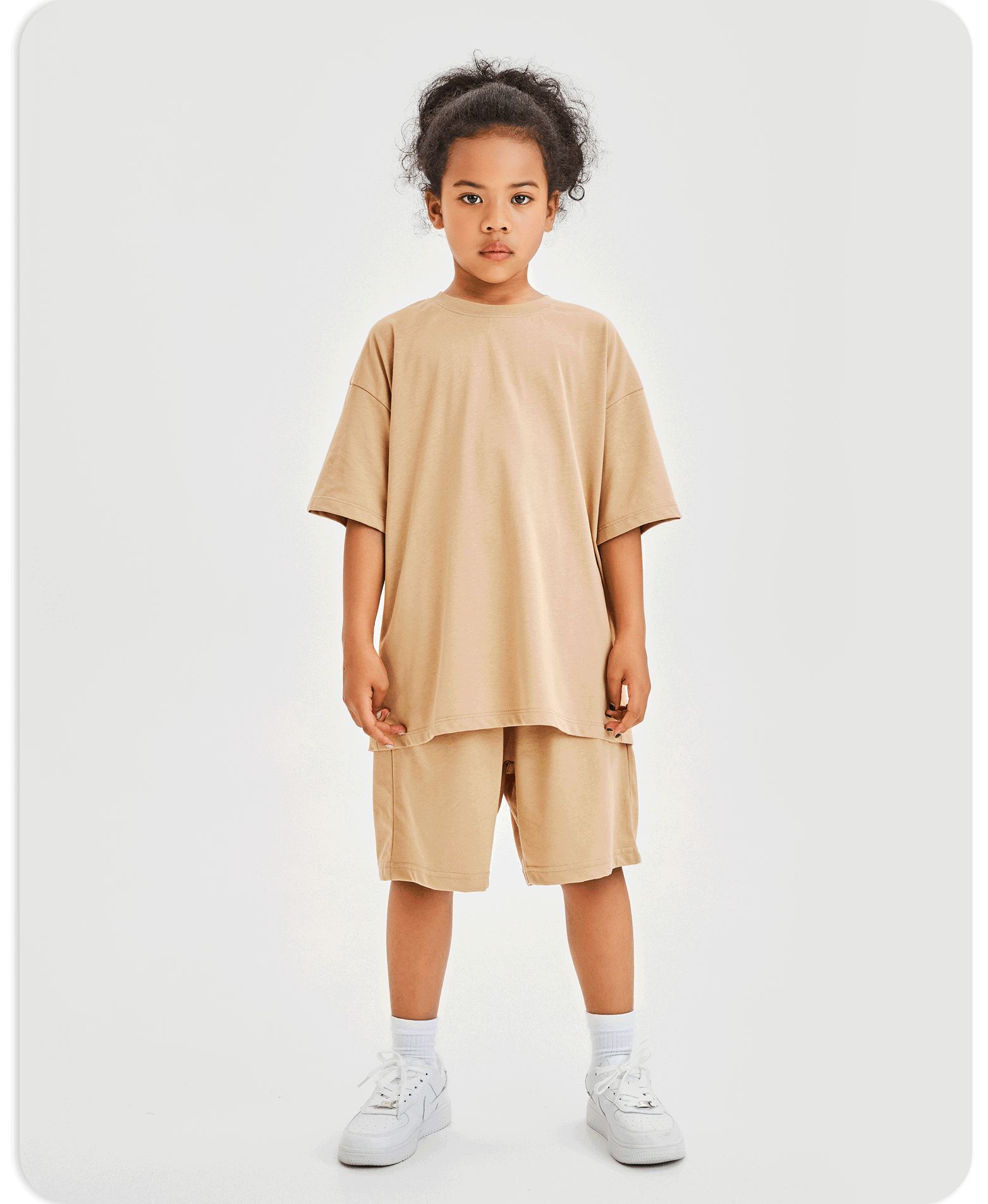 틸라니 아동복 유럽 및 미국 트렌드 브랜드 대지색 시리즈 여름 230G 순면 아동 반바지 도매 캐주얼 다용도