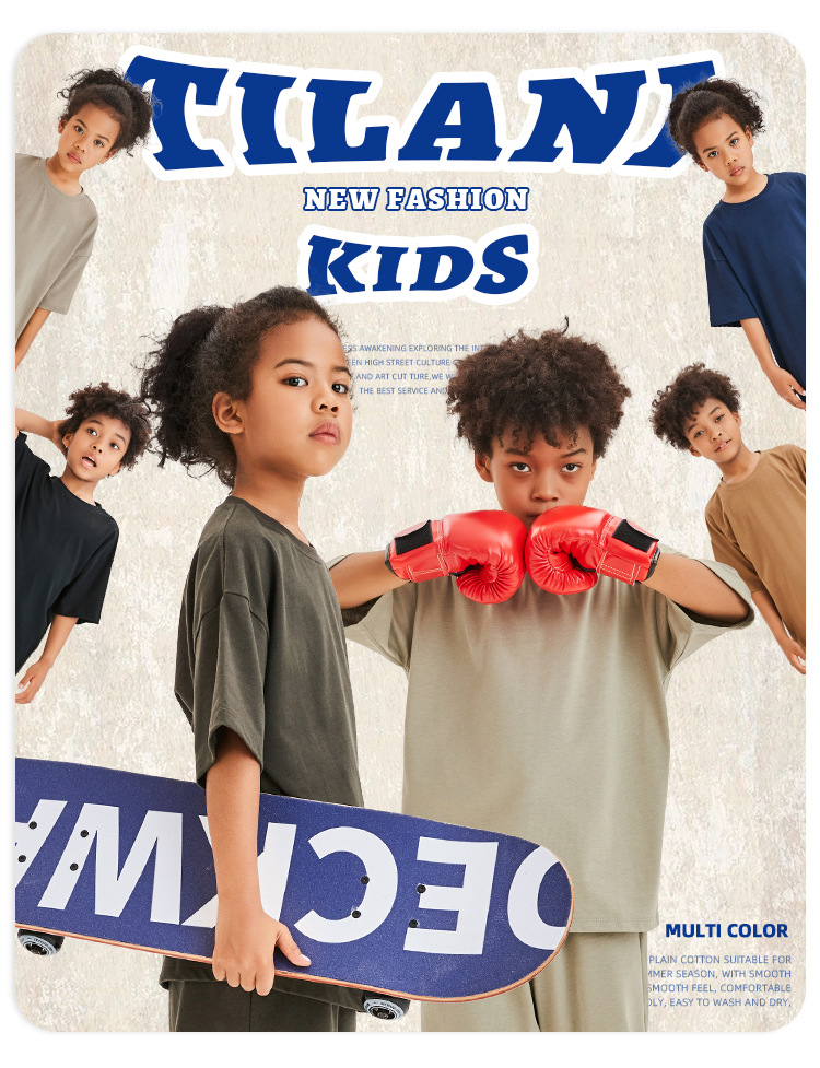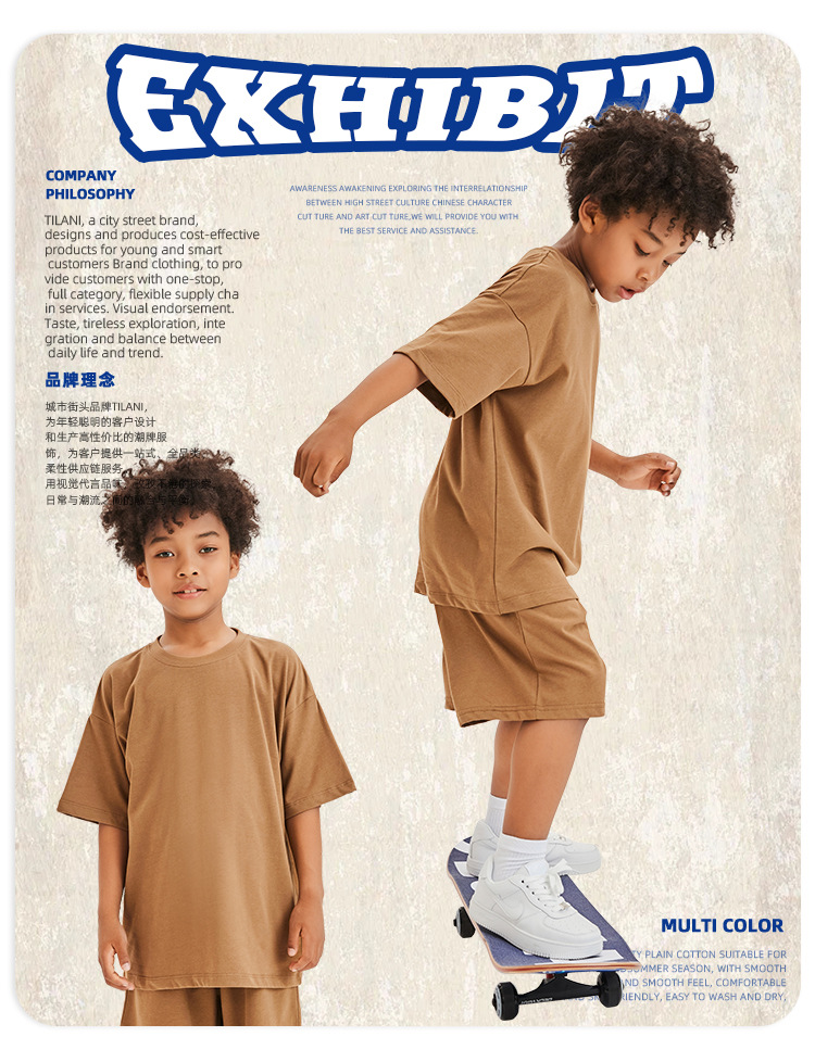 틸라니 아동복 유럽 및 미국 트렌드 브랜드 대지색 시리즈 여름 230G 순면 아동 반바지 도매 캐주얼 다용도스토어 가기