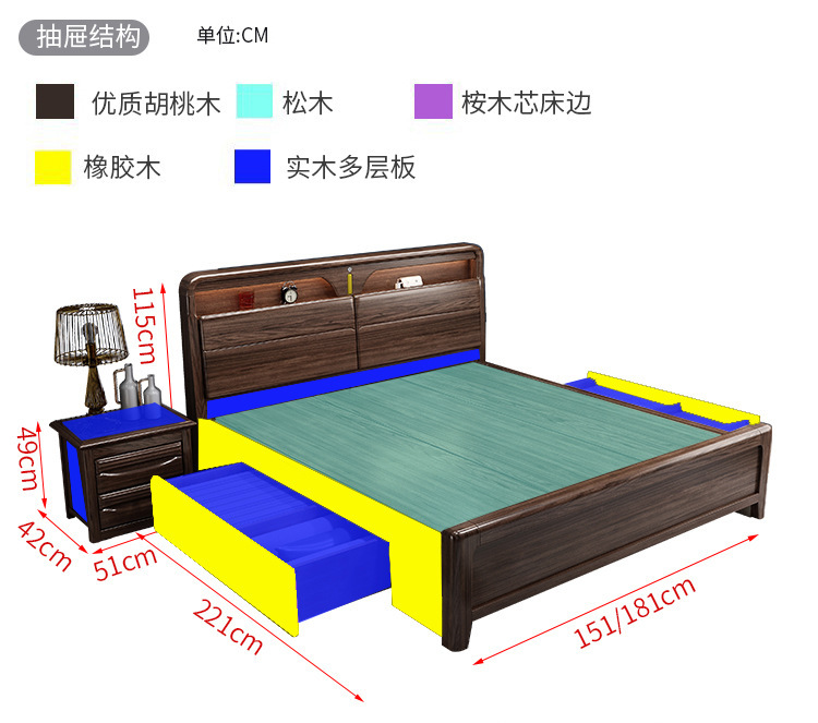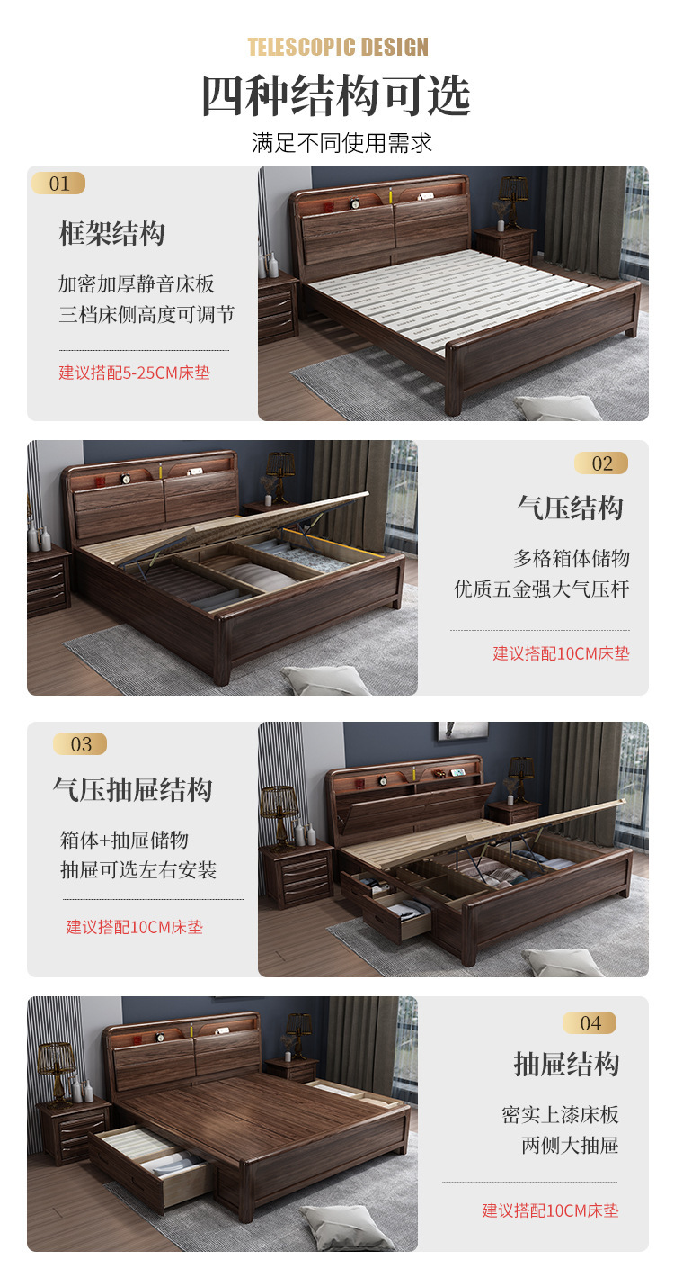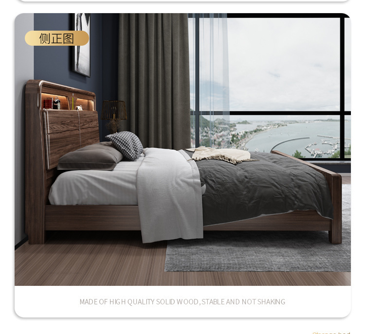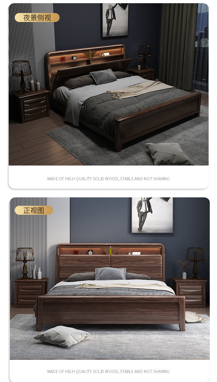 월넛 단단한 나무 침대 1.8 m 더블 노르딕 마스터 침실 1.5 라이트 럭셔리 퀸 침대 모던 심플 박스 수납 침대스토어 가기