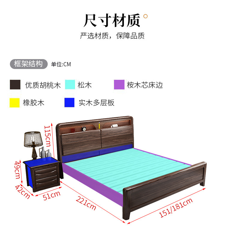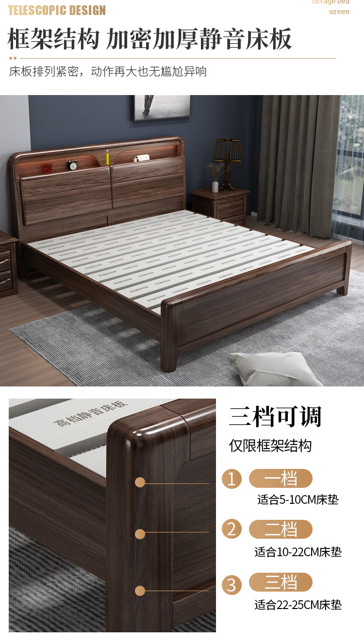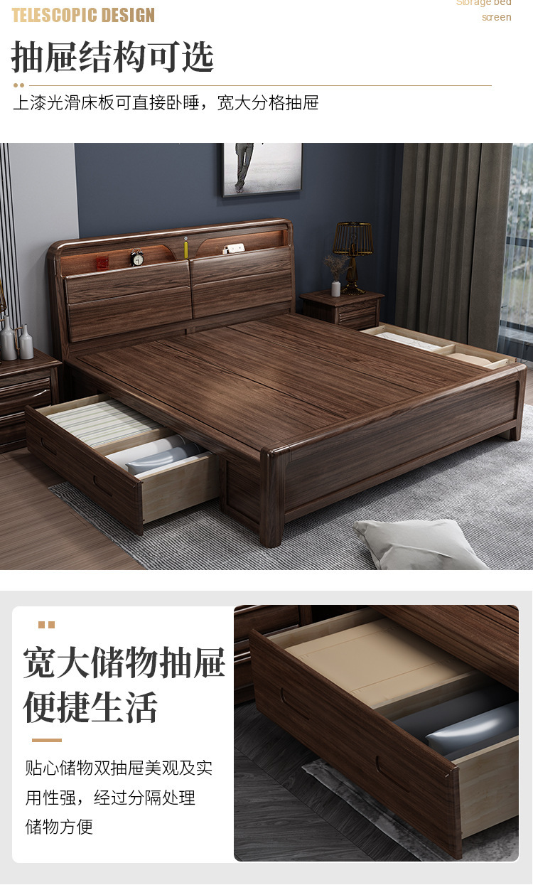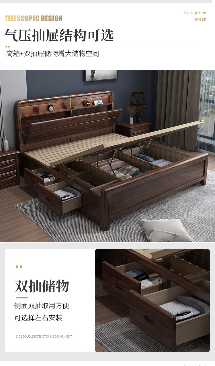월넛 단단한 나무 침대 1.8 m 더블 노르딕 마스터 침실 1.5 라이트 럭셔리 퀸 침대 모던 심플 박스 수납 침대