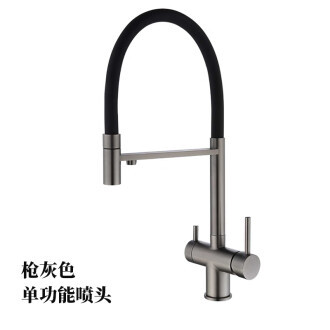 무쿠 와이어 드로잉 건 그레이 범용 회전 주방 수도꼭지 순수 3 대 1 직접 음료수