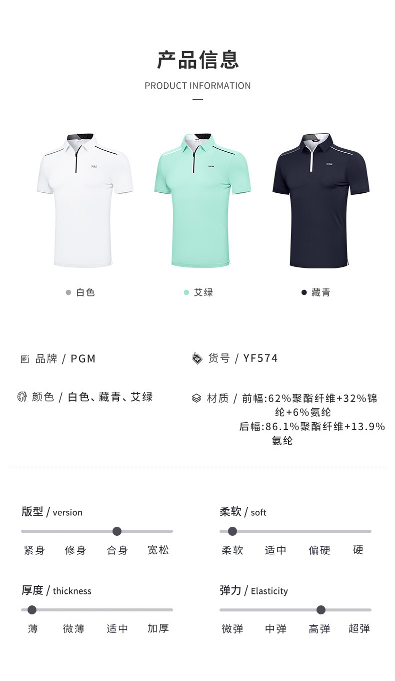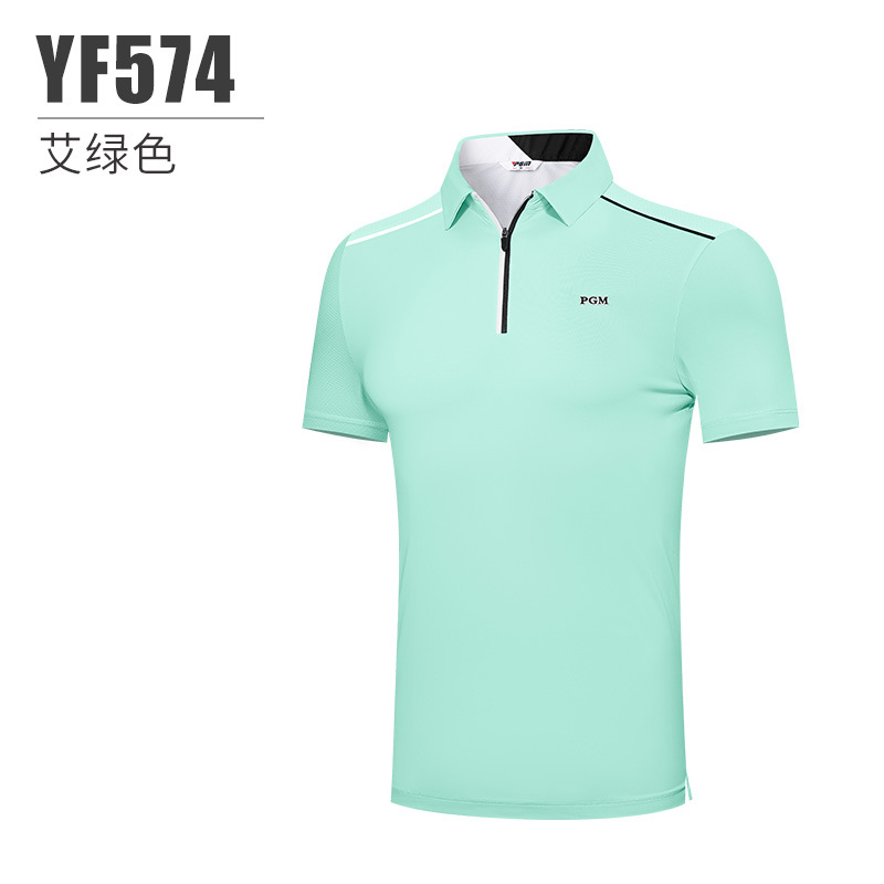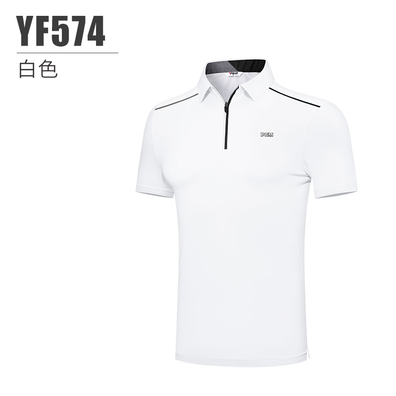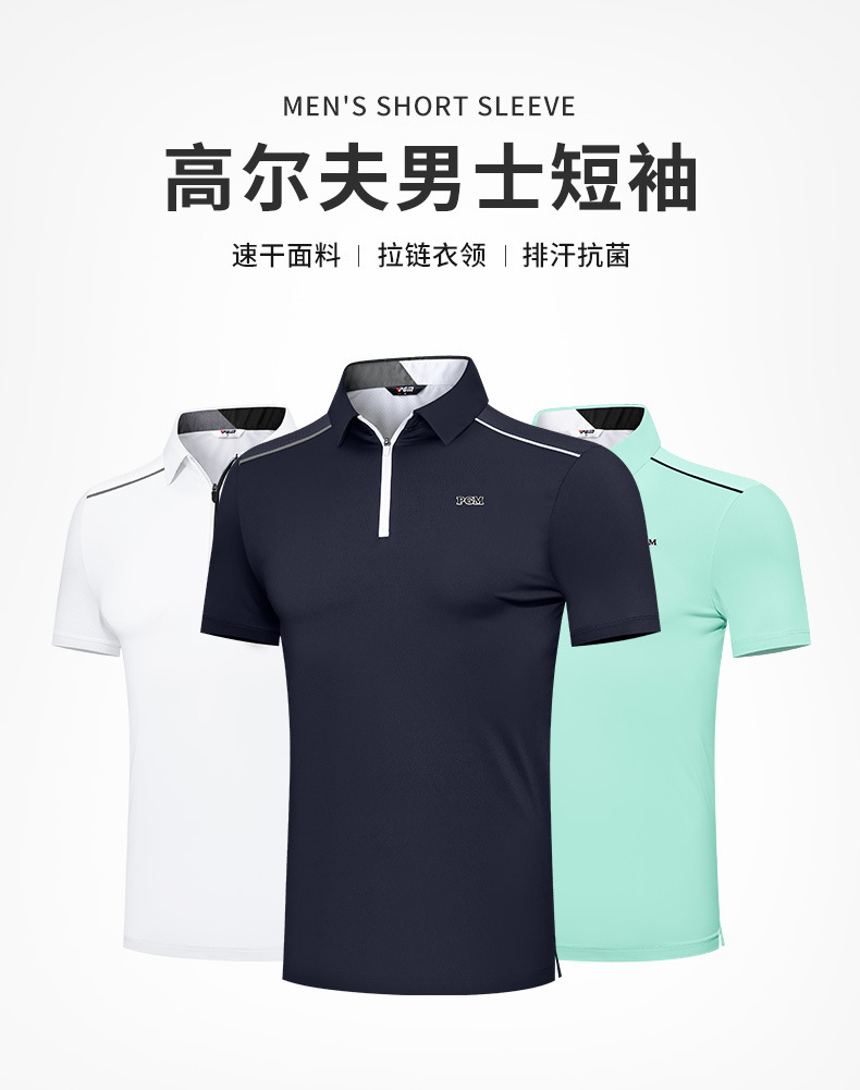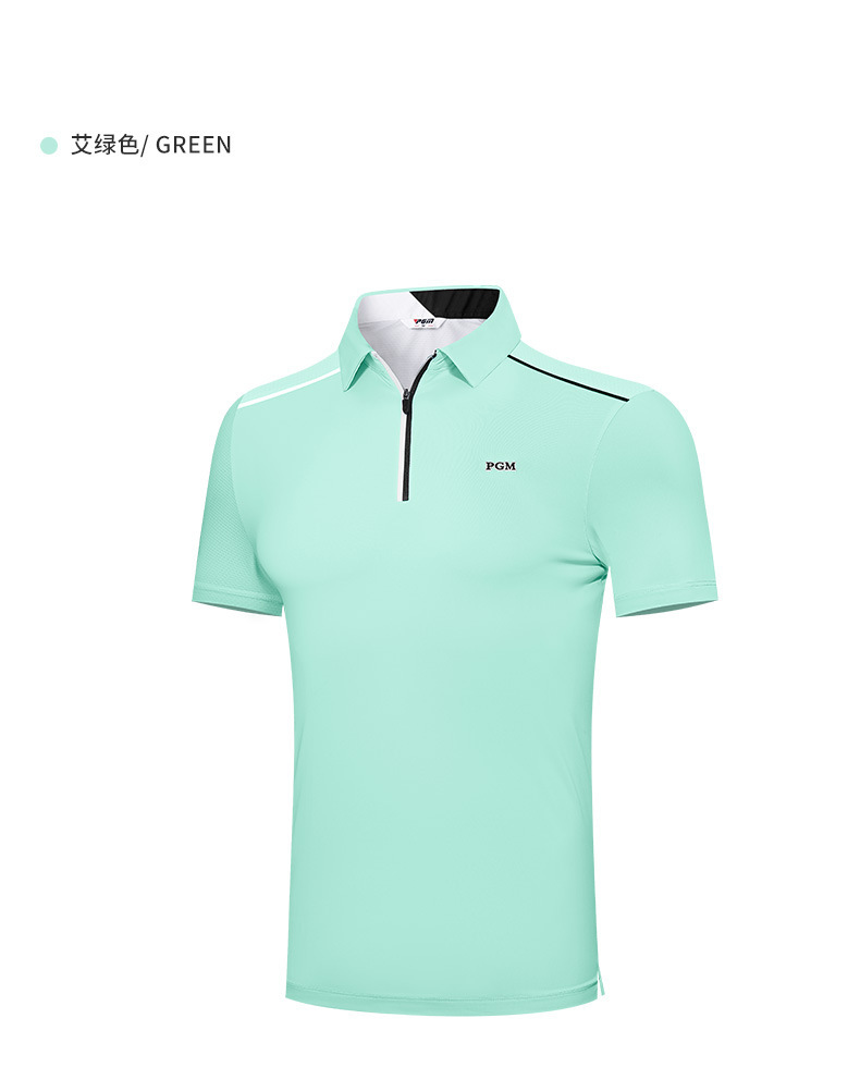 PGM 새로운 골프 의류 남성용 반팔 여름 스포츠 티셔츠 남성용 통기성 속건 땀 흘리는 지퍼 옷깃