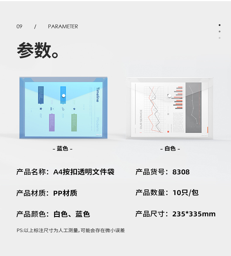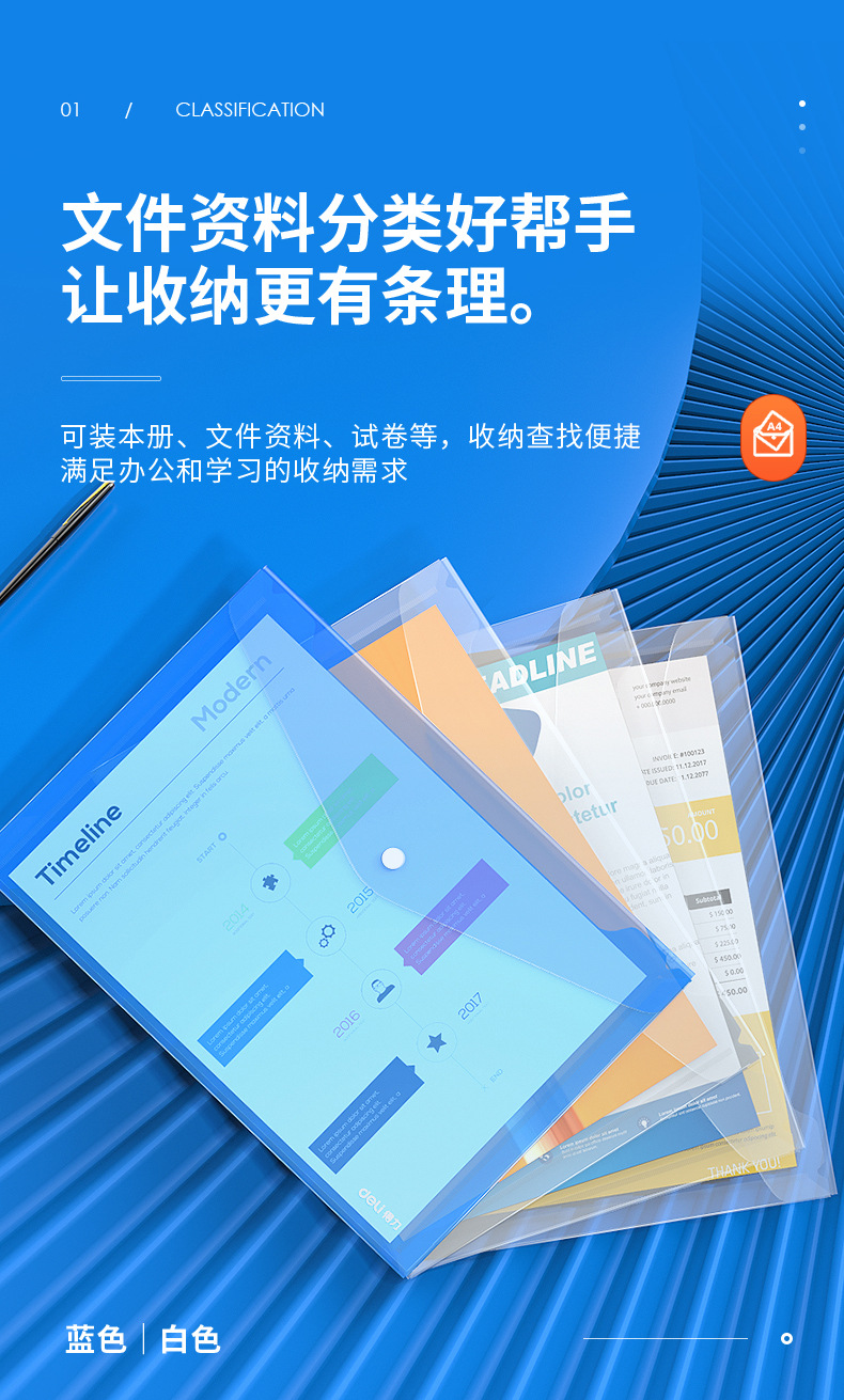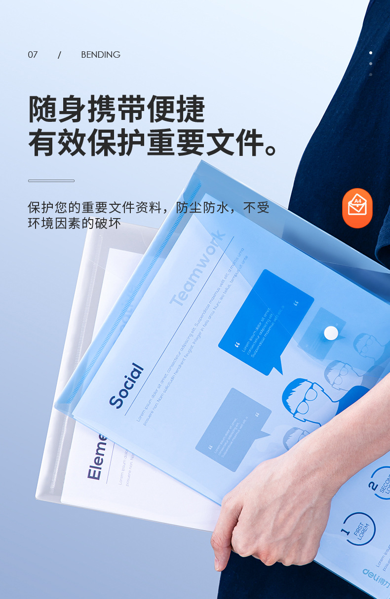 델리 8308 파일 가방 A4 투명 스냅 버튼 테스트 용지 보관 가방 학생 플라스틱 두꺼운 대용량 보관 가방스토어 가기