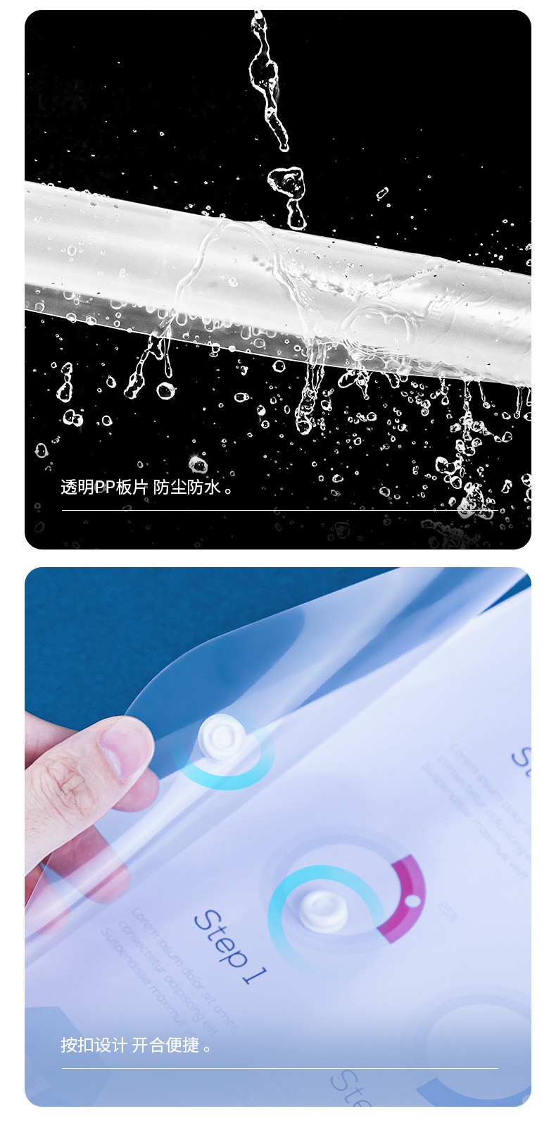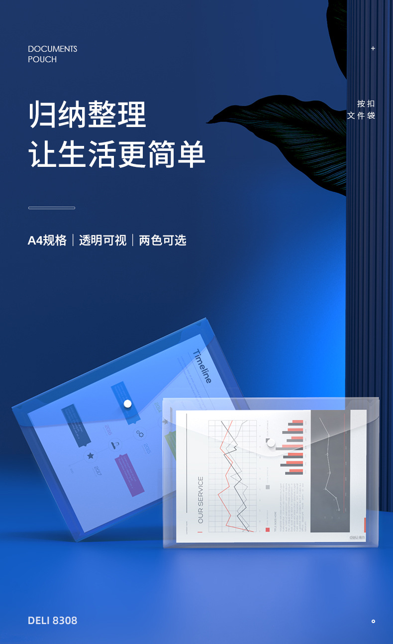 델리 8308 파일 가방 A4 투명 스냅 버튼 테스트 용지 보관 가방 학생 플라스틱 두꺼운 대용량 보관 가방