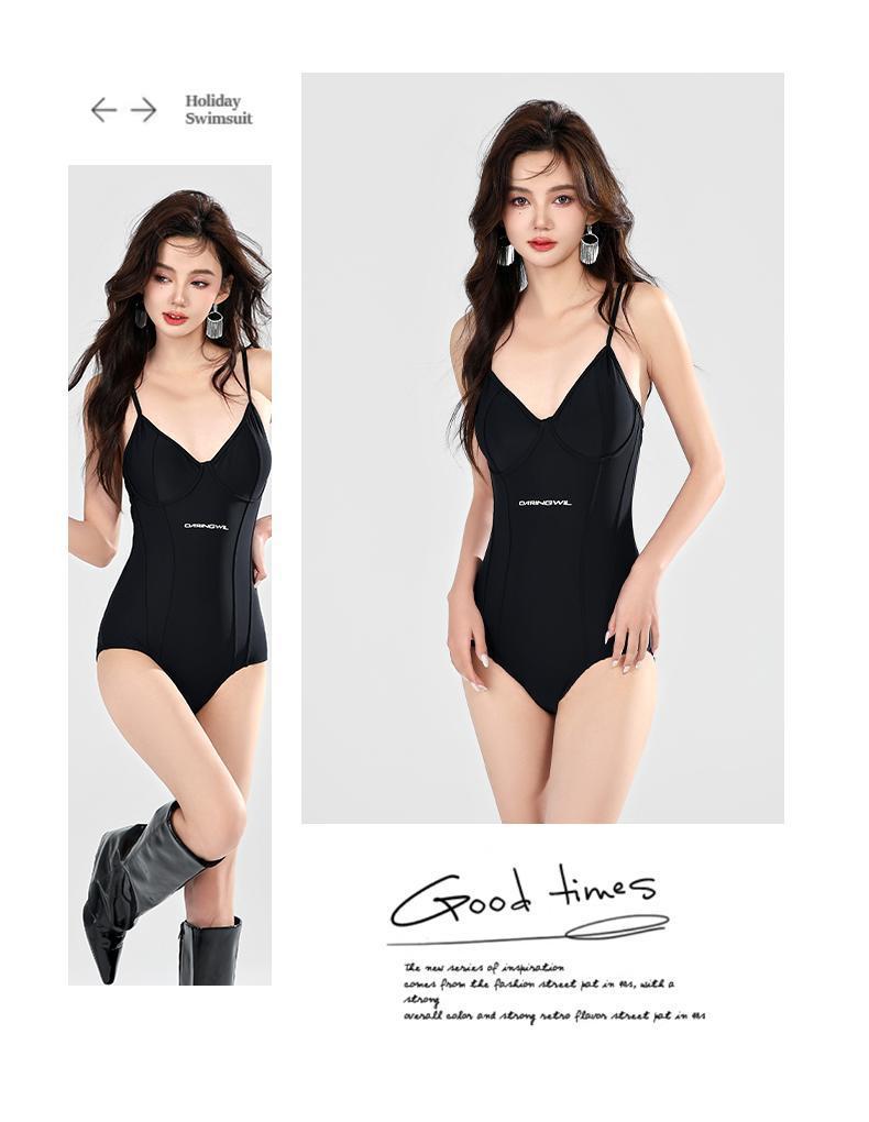 2023 새로운 원피스 수영복 여성용 섹시한 등이없는 작은 가슴 개더 업 여행 휴일 온천 수영복 스타일의 슈퍼 요정